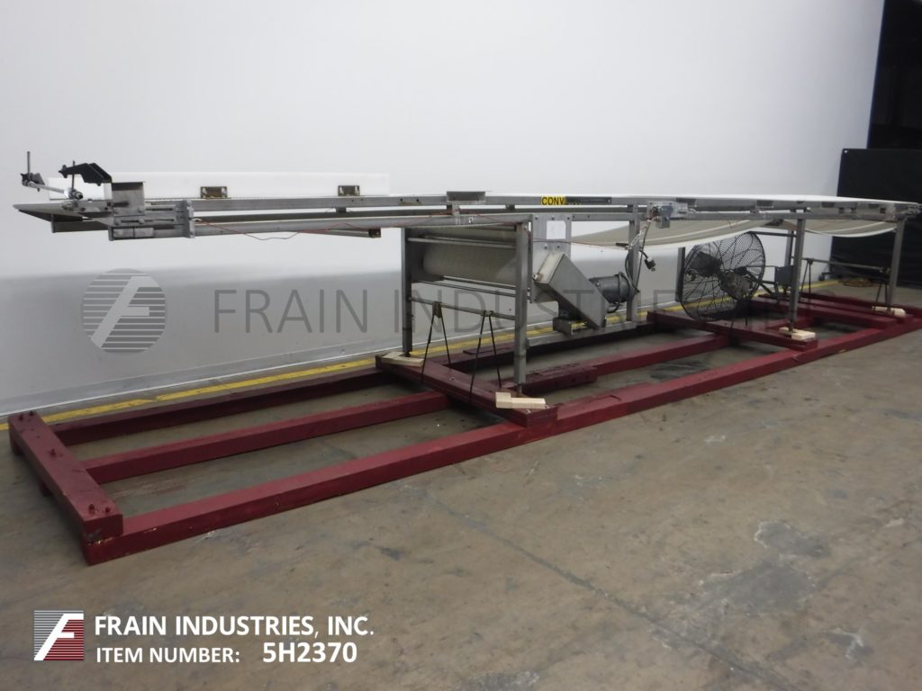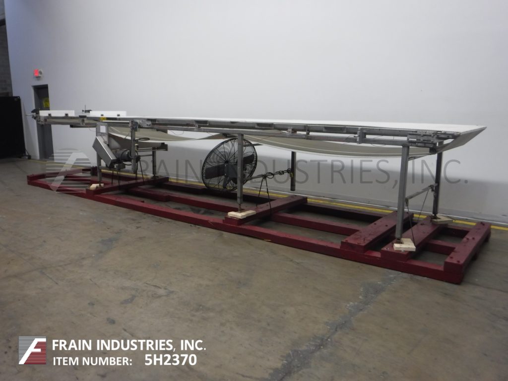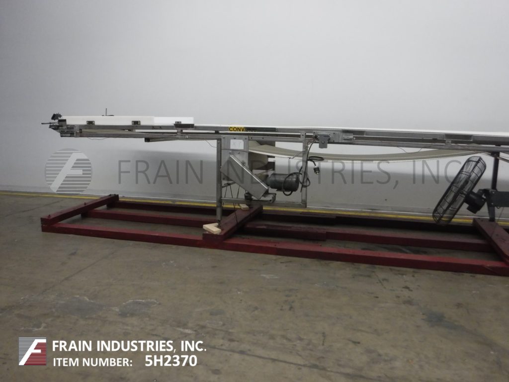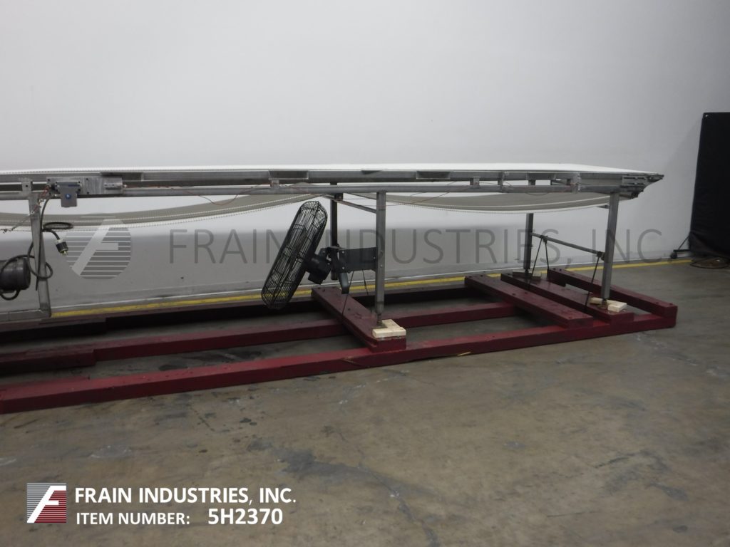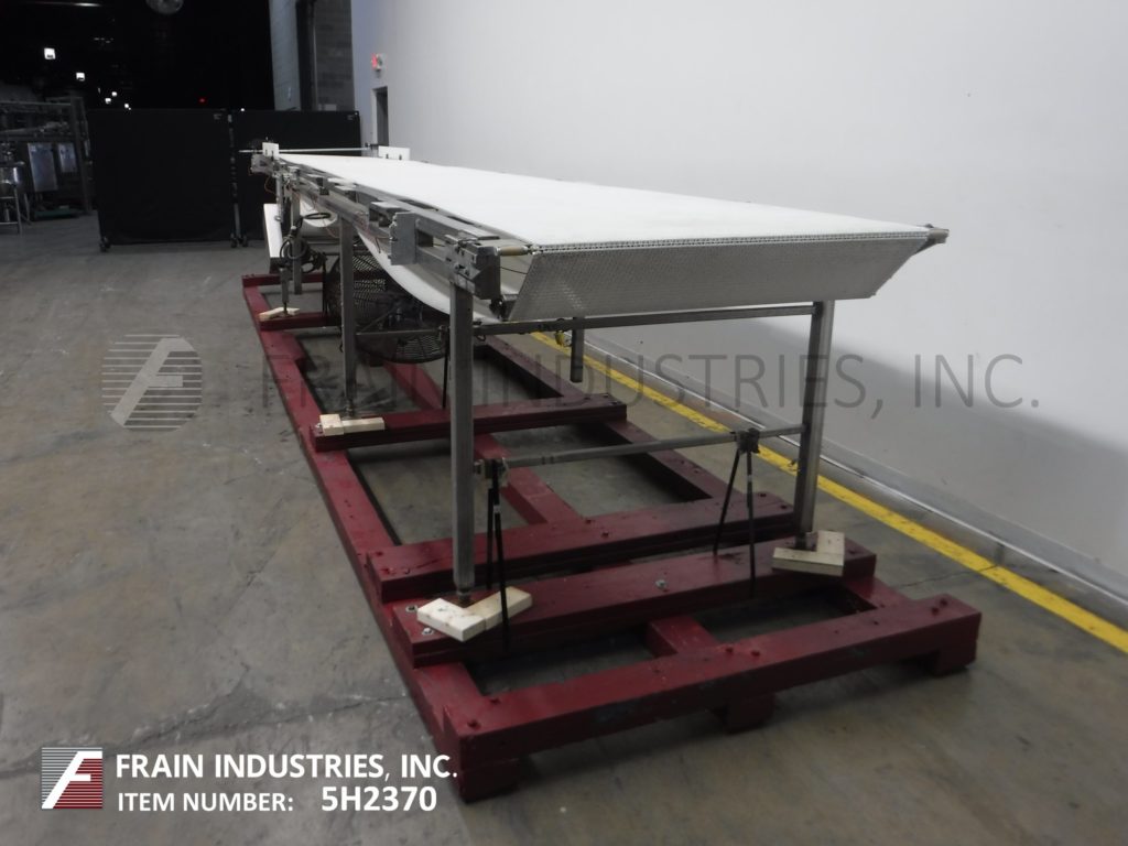 Back to All Equipment42“宽x 306" long stainless steel table top conveyor. 42" wide and 306" long Intralox style belt has an infeed / discharge range of 43" to 48" with a center drive and mounted on (6) legs with leveling pads.