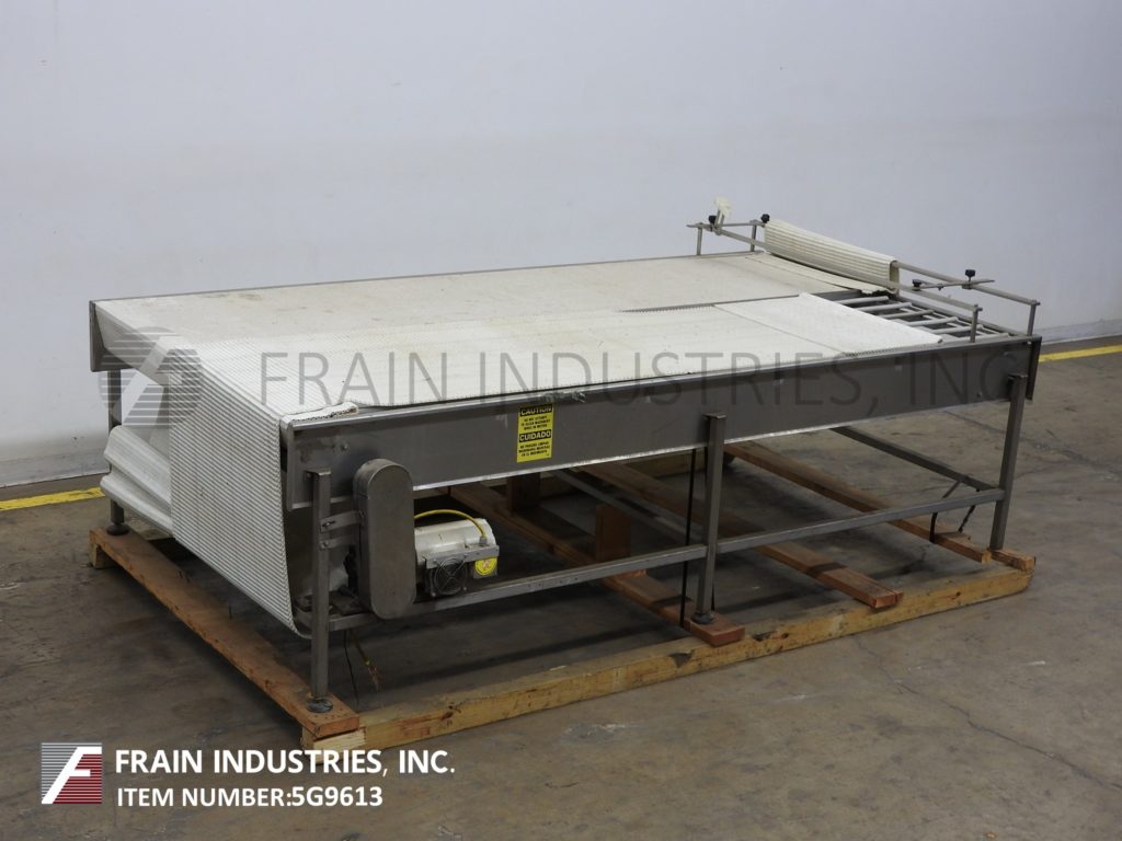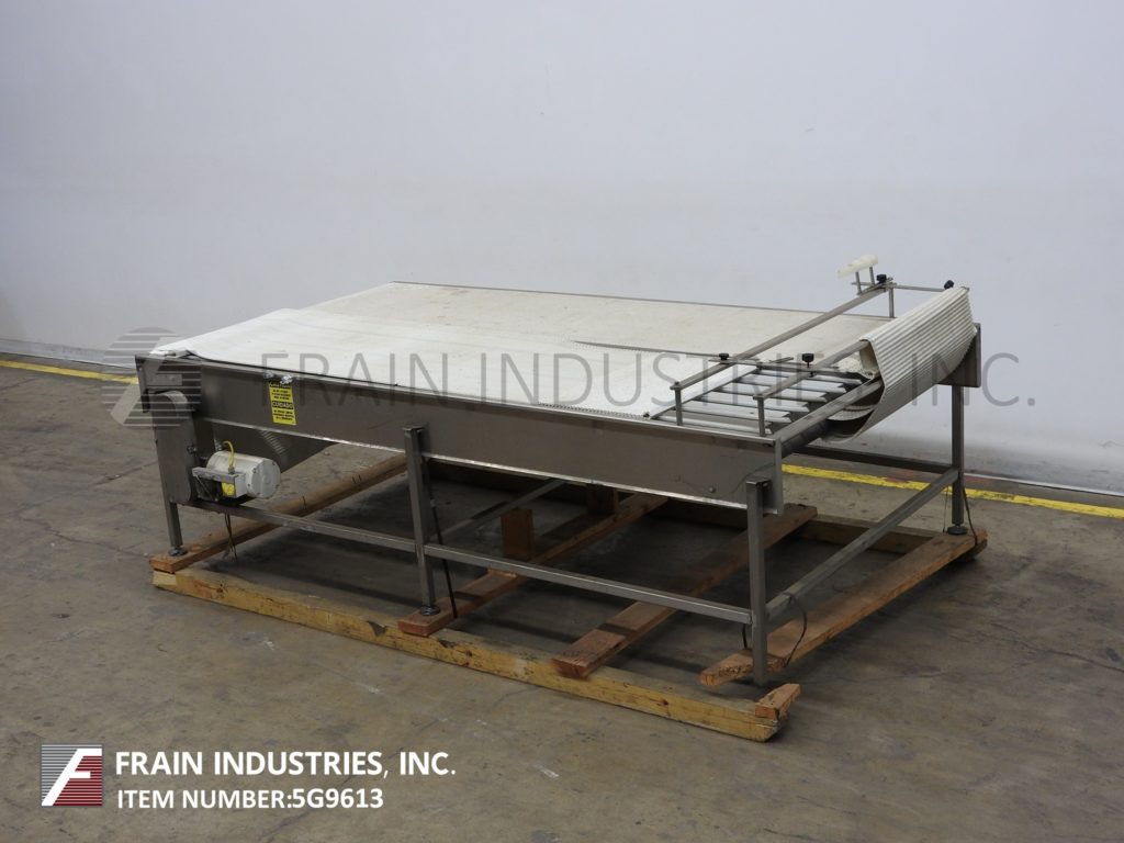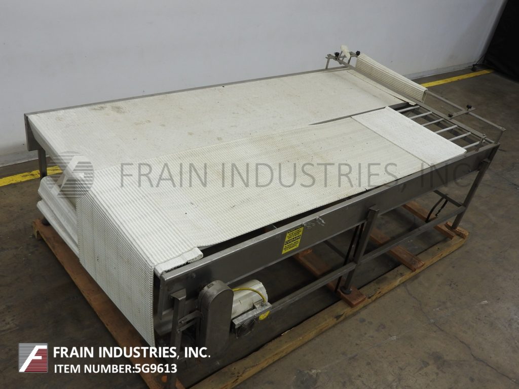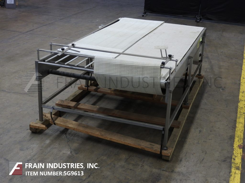 60“宽X 120”长不锈钢带式输送机。(2)30“宽和120”长的内部仪式风格带有进给/放电高度为35“。配有1½HP的驱动器,安装在(6)腿上。