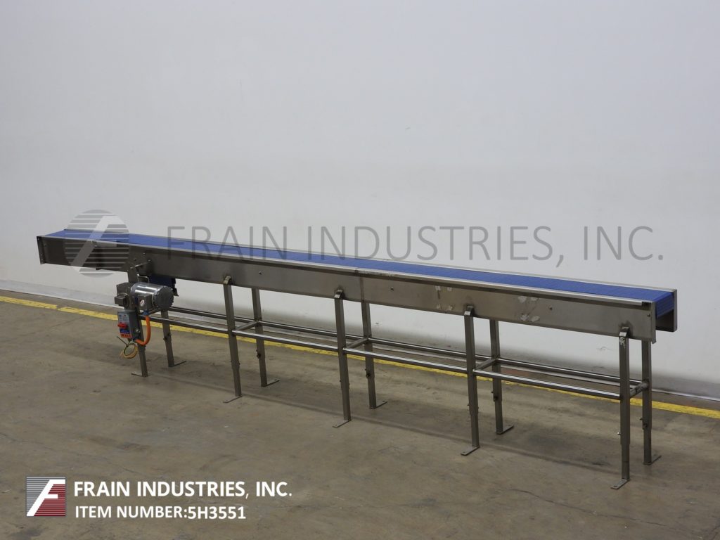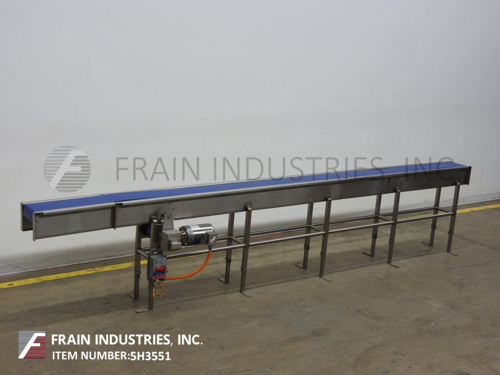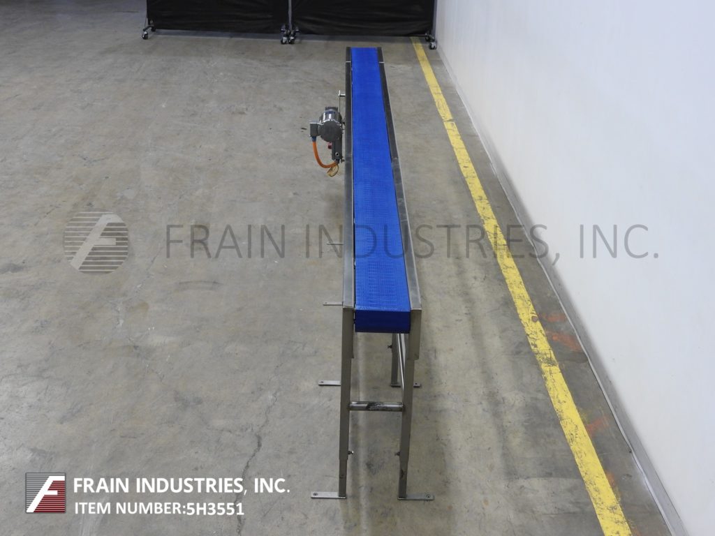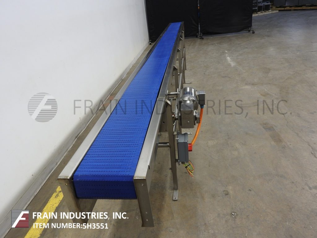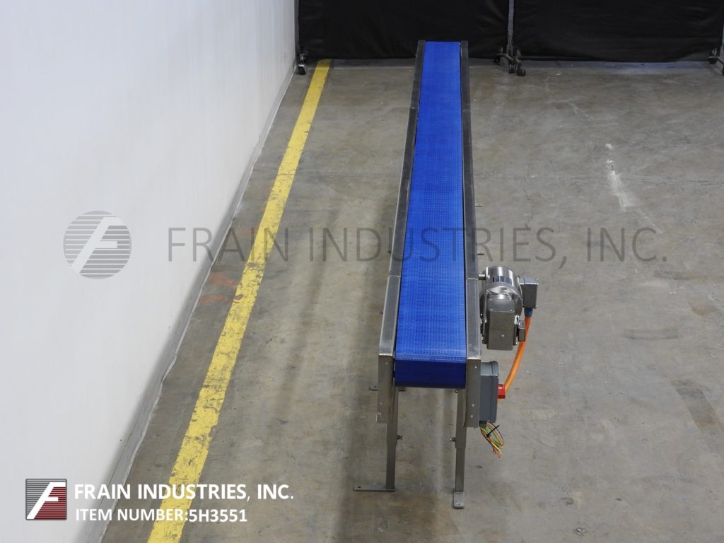 Intralox带式输送机宽8英寸,长192英寸,不锈钢,进料/出料范围为31英寸到40英寸。配备1马力驱动,安装在(10)调平腿上。
