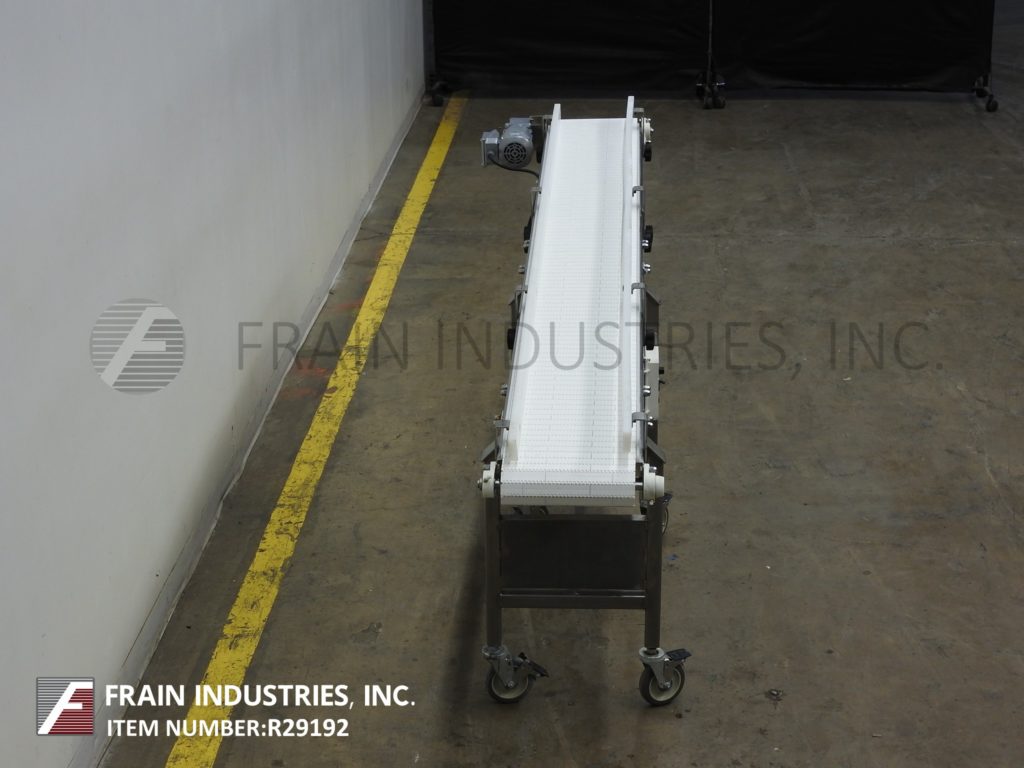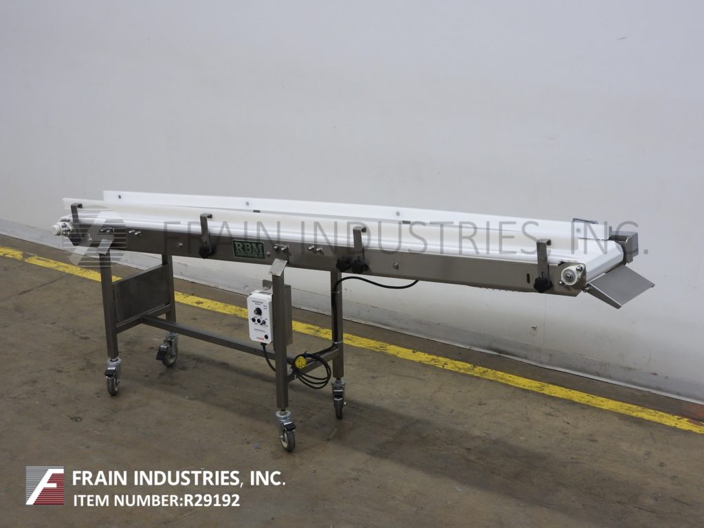 RBM,不锈钢工作台顶部输送。12" 宽和108" 长英特乐风格带具有的31" 的进料高度和43" 放电高度。配备有可变速驱动器和安装在脚轮。