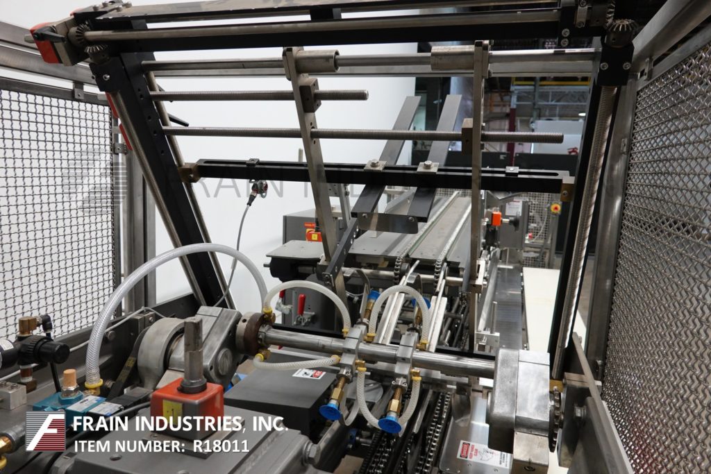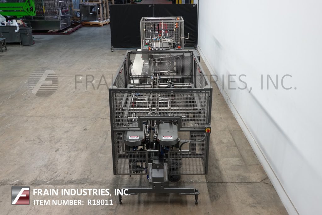 返回所有设备朗根B1型,半自动,连续运动,水平,手动装载,热熔胶箱。纸箱尺寸范围:1-3/4"至12"长度;宽度为1"至6";深度3-3/4“至14”。配备纸箱杂志,旋转真空采摘和地方,(4)链可调设置在18"中心,9 '产品负载区域,小襟翼犁,主要襟翼关闭器,顶部产品限制,诺德森胶系统,侧带压缩排放和安全防护。安装在基础框架与水平腿和脚轮。速度取决于材料,应用和机器配置。