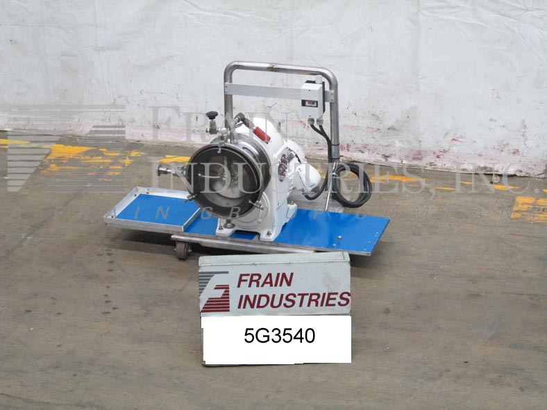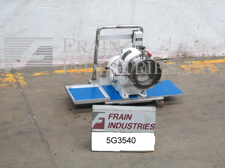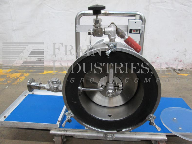 返回所有设备Cornell Model D-8变速“经典”额定0到每分钟2加仑,圆盘旋转从2000到6000 rpm - 取决于材料和应用。配有6个“直径盘,具有1/2”产品,进出口和1/2“顶部真空端口,1/2”底部排水管。产品流过成膜环,并在旋转盘的表面上,此时发生分散/转移作用。通常用于食物,化妆品,药物和化学应用的分散,饮料。包括316个不锈钢接触部件,快速释放丙烯酸盖。用脚轮安装在推车上。
