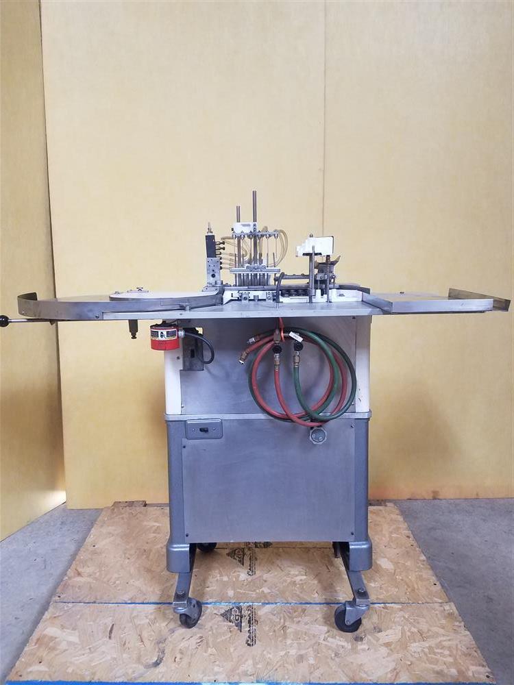 返回所有设备Cozzoli FPS2型,自动,间歇运动,整理,冲洗,填充,冲洗和火焰封口机额定每分钟120个容器-取决于材料,应用和机器配置。不锈钢接触部件。填充范围:1cc至30cc,精度±0.5%。容器尺寸范围:直径3/8"到1";高达5-5/16英寸的高度和能够处理安瓿,玻璃管,洋葱皮和小瓶(更换部件需要不同的大小和填充范围)。配有24"外径圆盘整理工作台和14"长的容器辊式输送机,集装箱分度,无容器/无填充,可同时做2个容器,冲洗,填充,冲洗和火焰密封双挑臂和拒绝斜槽堆积表。安装在带有脚轮的重型框架上。