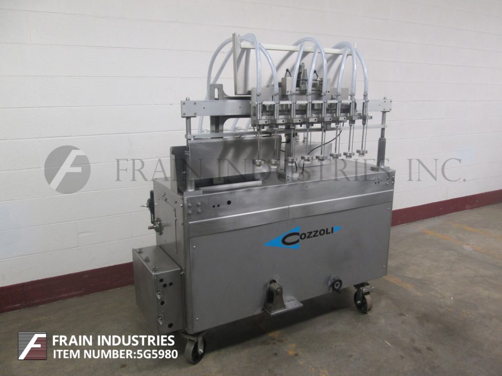 返回所有设备Cozzoli,间歇运动,8个磁头在线活塞填料,每分钟24到120个容器 - 取决于材料,应用和机器配置。填充范围:最多600cc,具有适当的变化部件。目前配备(8)2“ID x 8-1 / 2”长(240cc)活塞,30“长喷嘴滑动杆,带有1/4”OD潜水喷嘴,目前设置在4“中心,没有容器/无填充。安装在带脚轮的基架上。