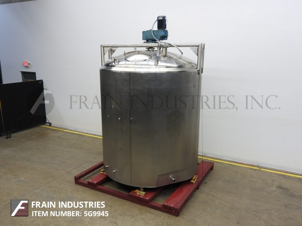 返回所有设备Crepaco,2000加仑容量,304个不锈钢夹套混合罐。船舶尺寸:84“直径; 90英寸直墙。配备圆顶顶部,18英寸的直径顶部通量,配有翻盖盖,(2)热电偶,3个HP桥式扫描搅拌器和倾斜底部,带有2½“OD / 2”ID Tri-Clamp侧底底底部放电,有9“落地间隙。