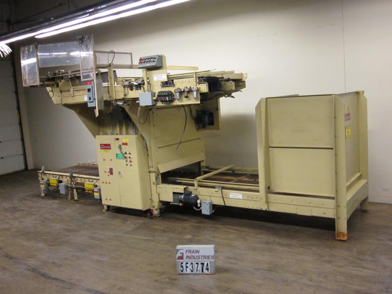 返回所有设备Currie型号LSP5,自动,紧凑,高水平,全箱码垛机额定从10到35箱每分钟-取决于材料和应用。最大外壳尺寸:长度24“;24“宽;在高度18”。托盘尺寸范围:长达50英寸;宽度可达48英寸。最大负载高度:72”。重量:每重达4200磅。配备空托盘分配器,有12托盘容量,计量带在饲料,和11 ' 6"长x 30"宽在饲料输送机,凸轮盒定位,盒层积累和层转移段,70"长x 48"宽卸料输送机22"卸料高度。控制面板采用PLC控制器,按按钮操作控制。