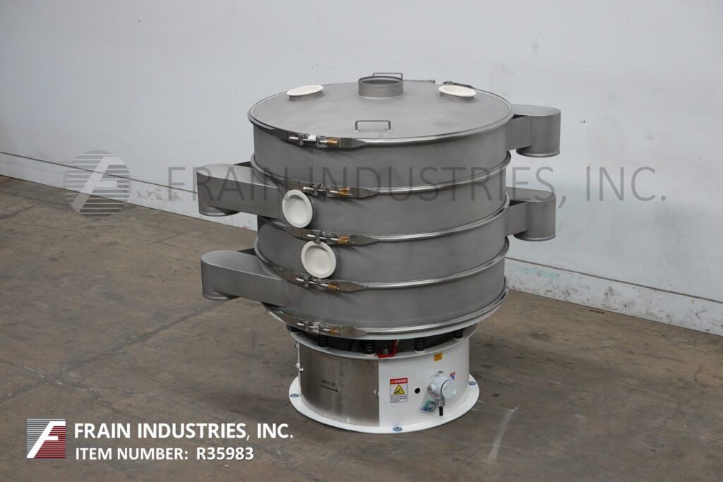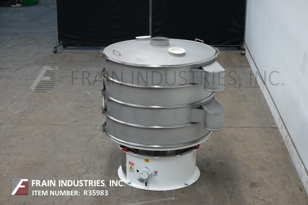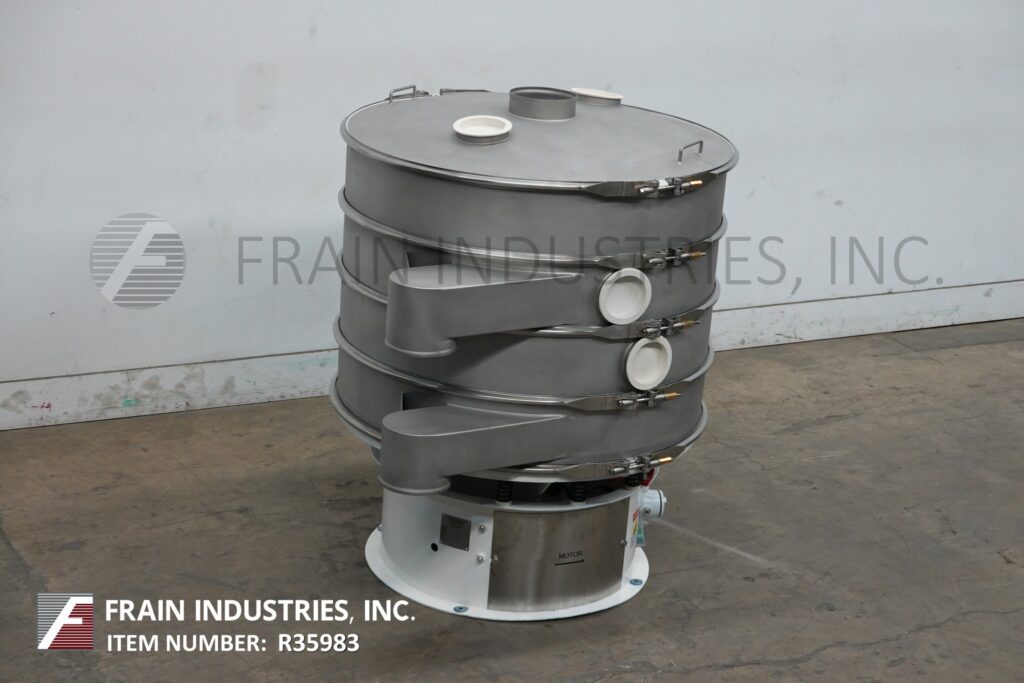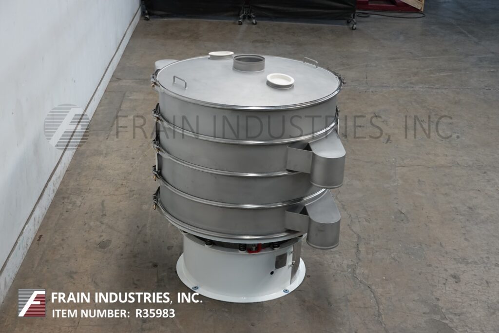 返回所有设备定制先进,直径48",分离振动筛。每小时的容量-取决于材料,应用和机器配置。配备(4)48“外径x 8”高不锈钢分离段和(3)屏幕(每次应用更换部分)。每个甲板有12“长排放喷口8”OD排放端口和(2)6“OD端口与插头。地面放电间隙;46英寸/ 38英寸/ 29英寸/ 22英寸。顶盖有8" OD中心产品端口和(2)6" OD检查端口与插头。安装在振动台式底座上。