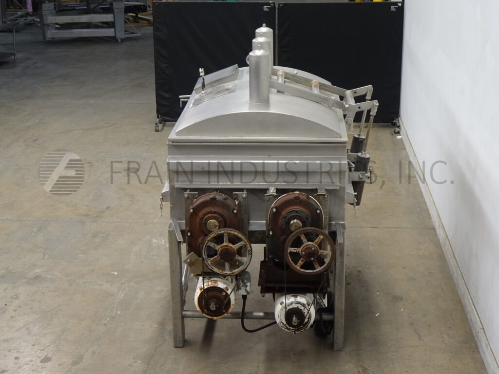 回所有设备自定义无味设备公司模型CDB2372PV,52ft3总容量,(38ft3工作容量)双板混合器304不锈钢接触部件和充气提升盖双槽维度72度宽度维德斯23号深度每槽30314OD电井和414OD混合槽爬上不锈钢(4)腿框