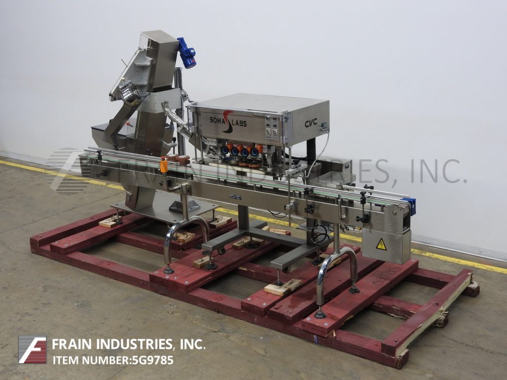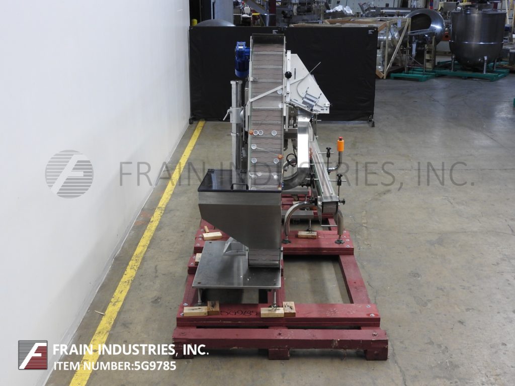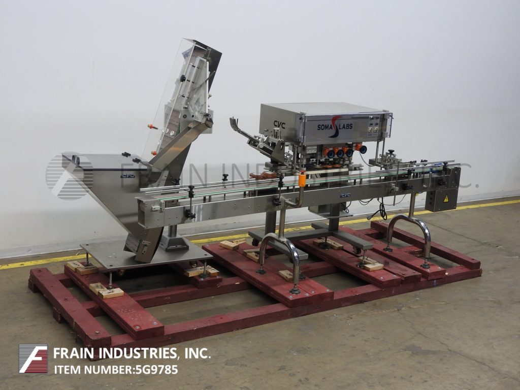 返回所有设备CVC,型号1204,自动,内联,不锈钢,3站,6个主轴送料器,封封箱和输送机。每分钟10到90个容器 - 取决于材料,应用和机器配置。帽尺寸范围:直径25mm至70mm。配备瀑布风格的帽子分拣机,带有26英寸的长x 24“宽x 23”深料斗和10“宽x 64”长带套装在4½“中心。输送机配有4英寸宽X 136“长达德雷林带,隔板,可变速度拨号,可调节导轨和转向盖帽的转向胶囊。封盖器配有可调节帽斜槽,24英寸长x 1“宽双集装箱夹带皮带,(3)可调节的主轴站和弹簧加载的瓶子保持下来。控制面板具有带开/关开关的主轴和夹持器控制拨盘。安装在“H”风格不锈钢高度可调节底架,带脚轮和平整腿。
