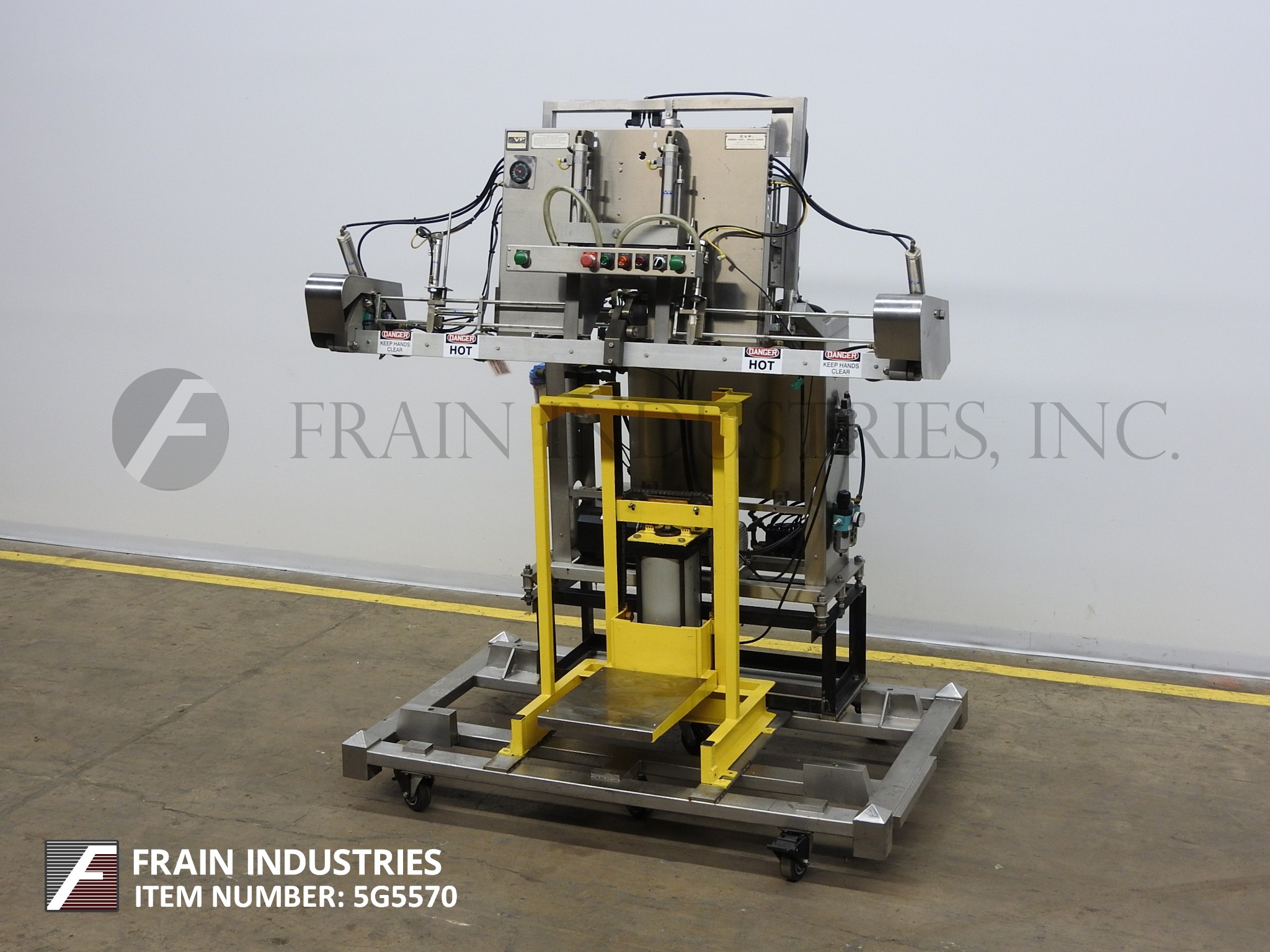 CVP,型号A200,SEMI自动真空袋封口机,每分钟袋数 - 取决于材料,应用和操作员灵活性。不锈钢和阳极氧化铝结构配备70“宽密封钳,双呼吸器,按钮开始/停止,数字热控制器,真空泵,真空过滤器和袋装站。