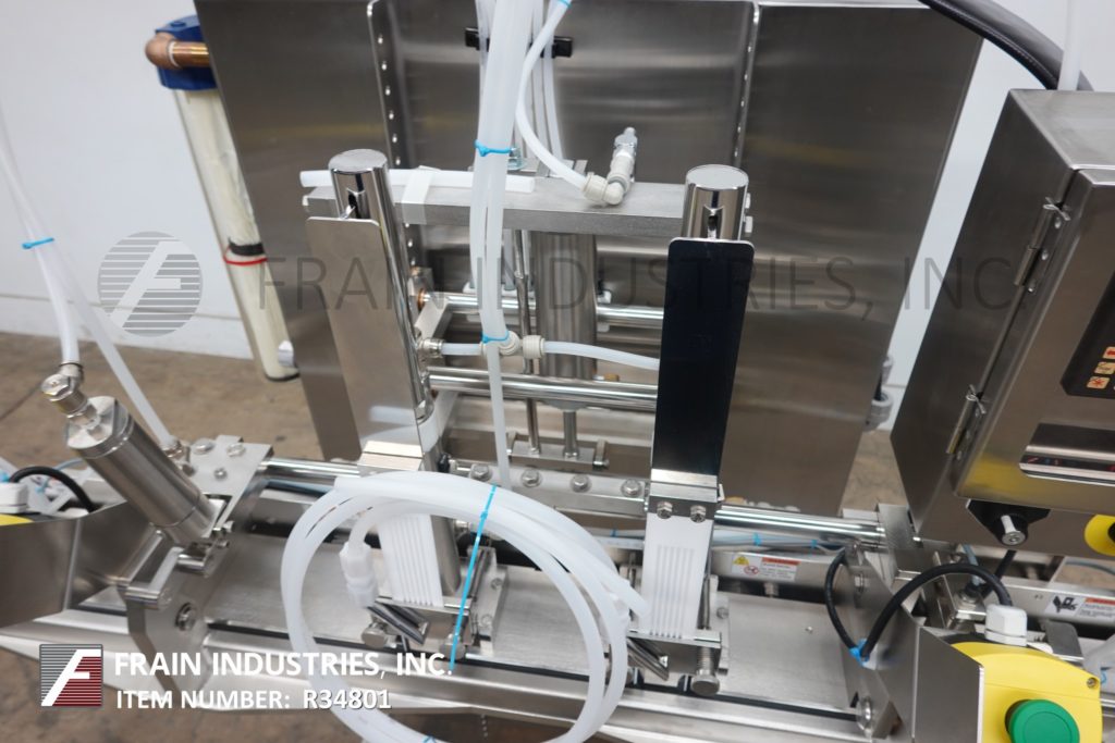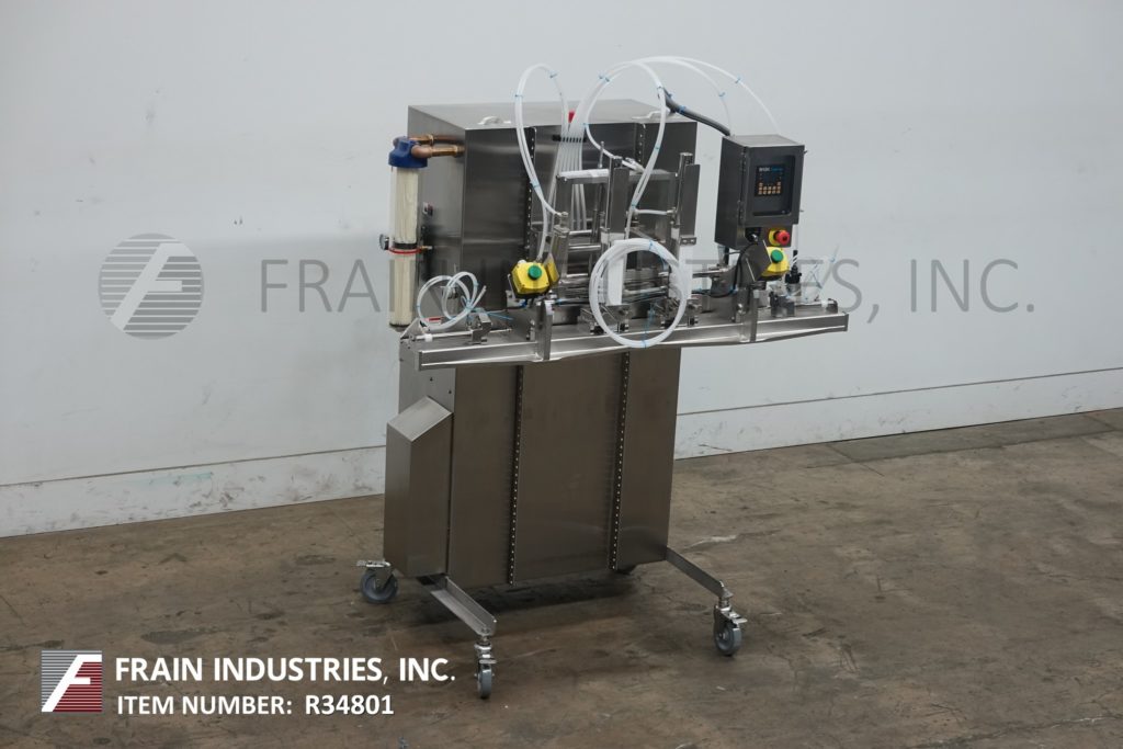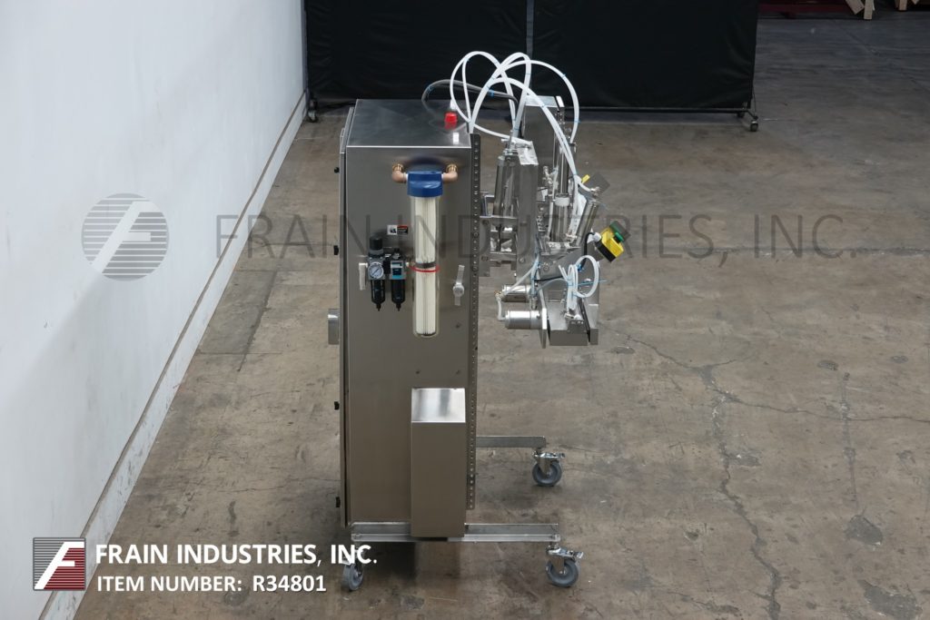 返回所有设备CVP型号马克11,半自动真空和气体冲洗改性大气袋封口机配置为M.A.P包装每分钟袋的数量-取决于材料,应用和操作灵巧。所有头部组件采用T-303/304不锈钢结构,采用电动抛光处理。配备54"热棒密封系统有冷边密封棒和特富龙®磁带,具有双呼吸管,侧面安装库诺过滤器,双特富龙真空/气体冲洗粒子探头。控制面板有(4)程序PLC微控制器2手控,真空和气冲洗控制逻辑,低气体报警系统,气动可调头安装和带节流阀的干叶片真空泵,气冲洗端口。安装在带有脚轮的H型底座上。