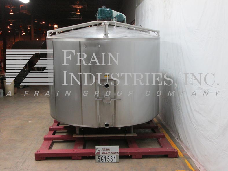 返回所有设备Damrow /利乐包型双O型,立式,304不锈钢,低压夹套,奶酪凝乳/乳清加工桶,容量可达50,000磅。外室尺寸:192"长x 108"宽x 83"直壁。圆顶顶部有18“OD人与翻转上螺栓下盖和安全格栅,5 Hp桥安装与(2)齿轮减速机和双马达驱动门风格煽动者,(1)8“OD网站端口,(1)5“OD通风(1)3”(2)2 - 1/2”,(2)2”OD卫生和2(1)“OD线程上端口。全低压侧和底部夹套带有(2)1-1/4”内径,(2)1”内径(1)1-1/2”内径(1)2-1/2”内径螺纹侧和(2)1-1/2”内径螺纹底部夹套。(1) 6-3/4”外径和(2)4-3/4”外径卫生侧底部端口一侧和(2)1”内径螺纹和(1)1/2”外径卫生侧底部端口另一侧。碟形底部,外径3”,卫生端底部排放,地板间隙12”。安装在(8)不锈钢支腿上。专为生产高品质的奶酪凝乳和乳清而设计,适用于大多数类型的奶酪,从硬品种如切达,半硬如豪达,软/新鲜如蓝奶酪。