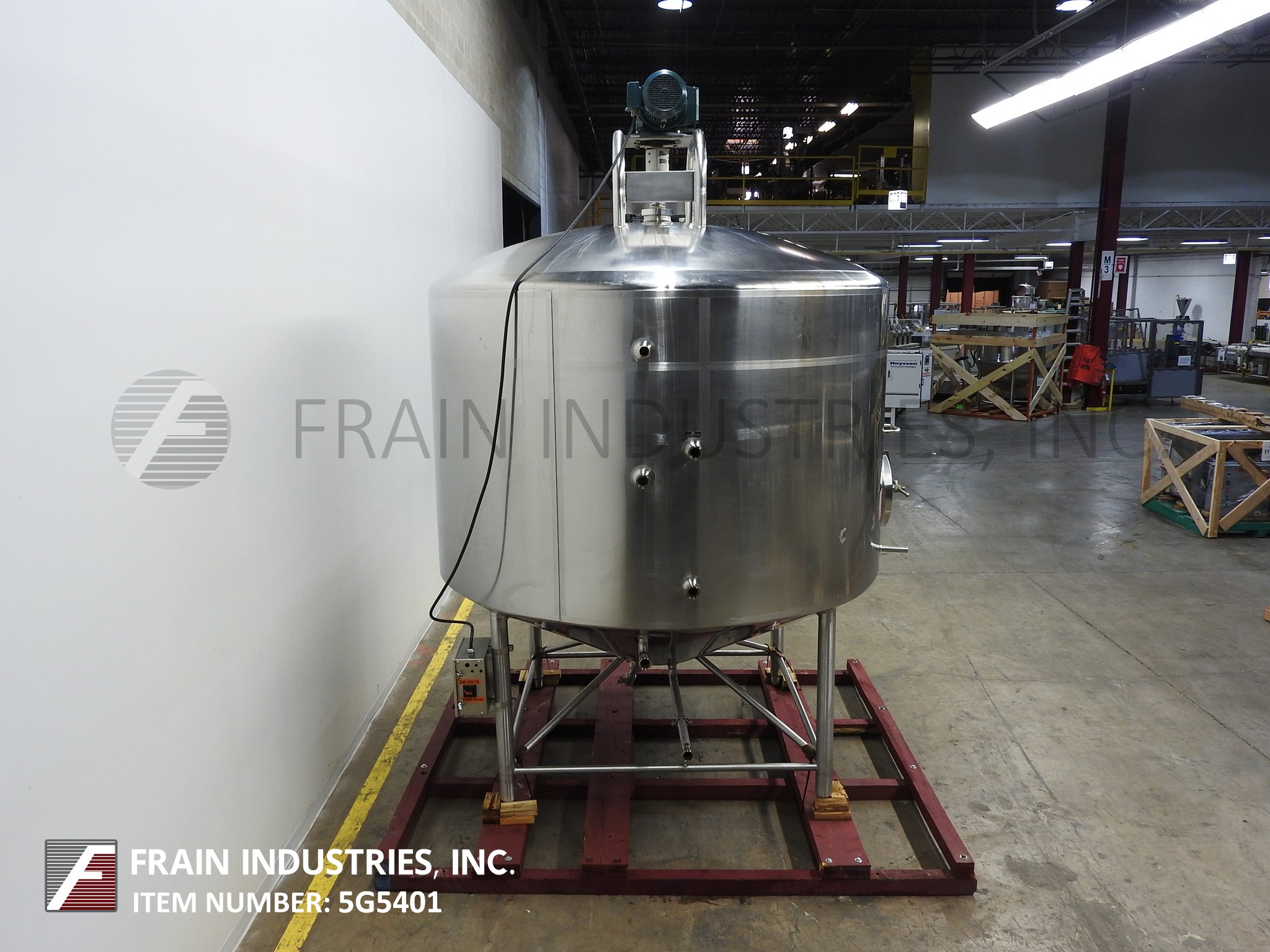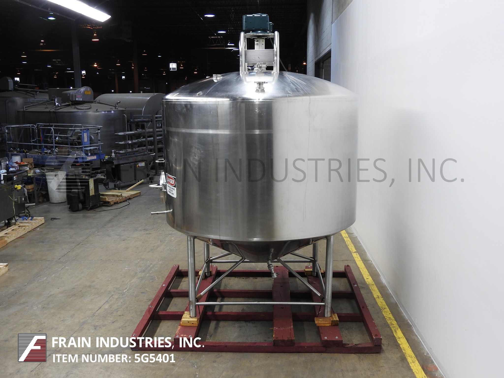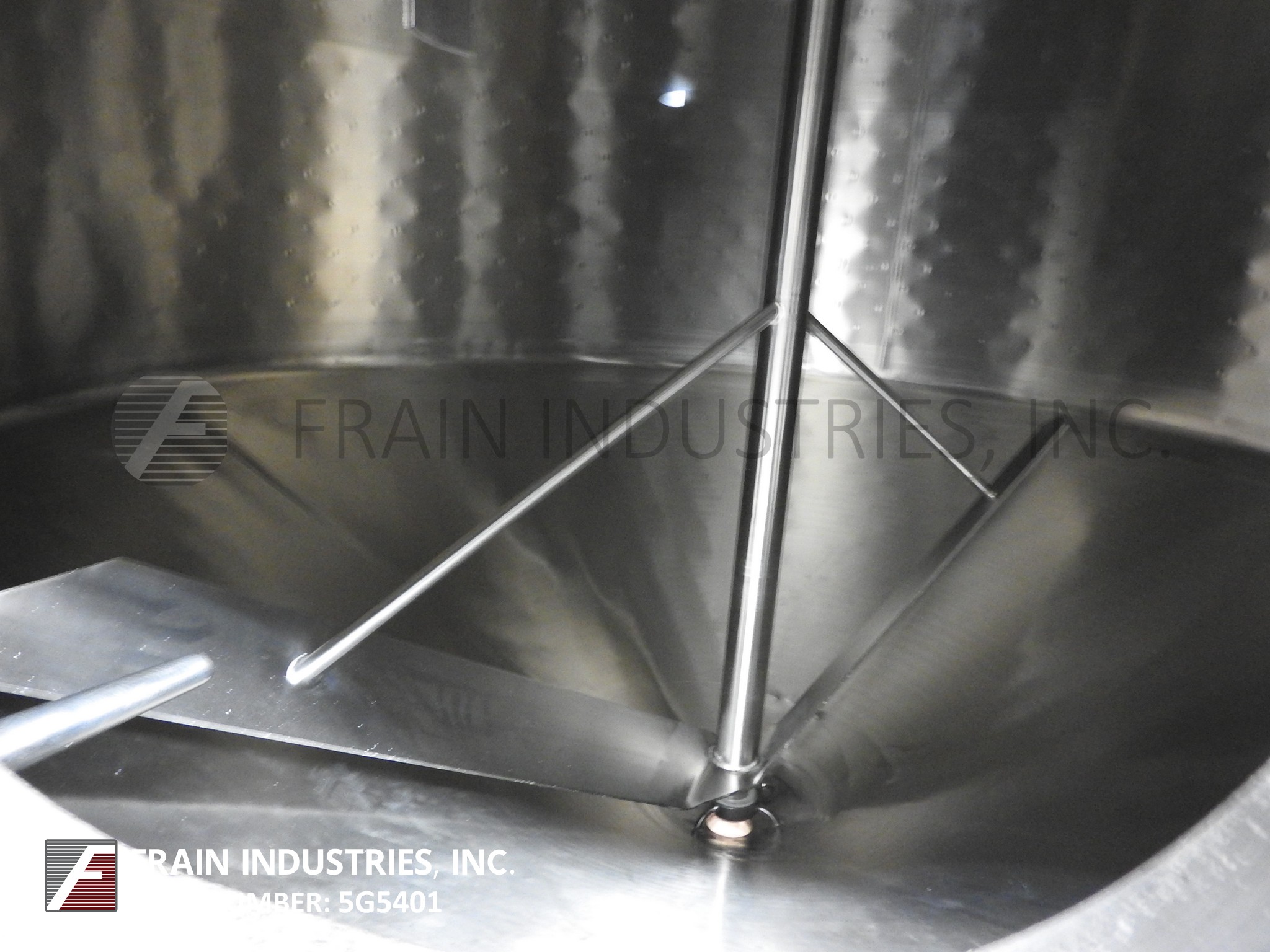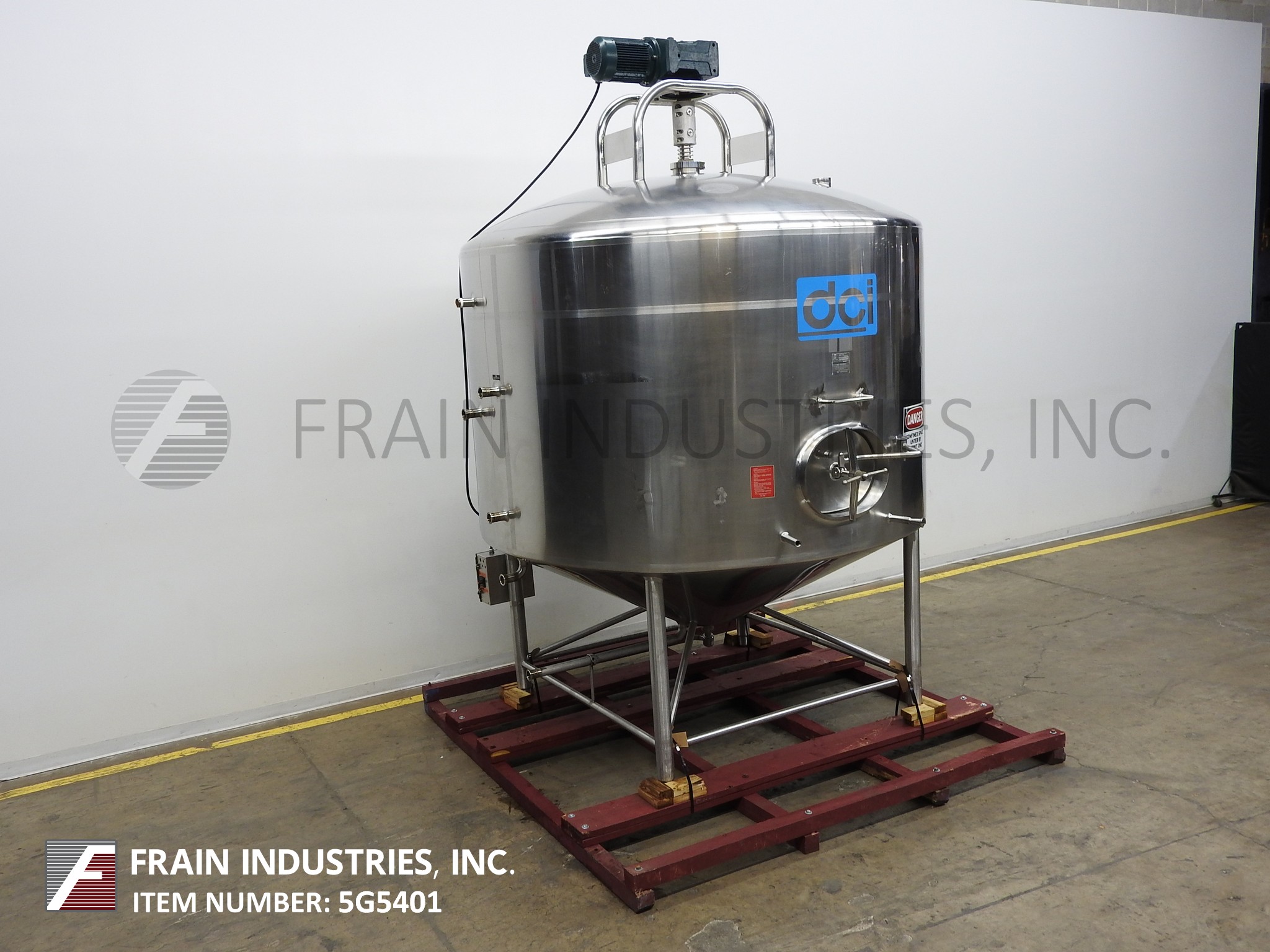 返回所有设备DCI, 2000加仑容量,3-A 304不锈钢凹口夹套工艺罐。容器尺寸:96"直径x 84"深62"直壁和锥形底部。配备20" x 16"侧入口螺栓下来人的方式,和1½/3马力顶部安装扫搅拌器。3区侧全夹克和底部夹克。3½" OD / 3" ID三夹底部放电与20"地间隙。