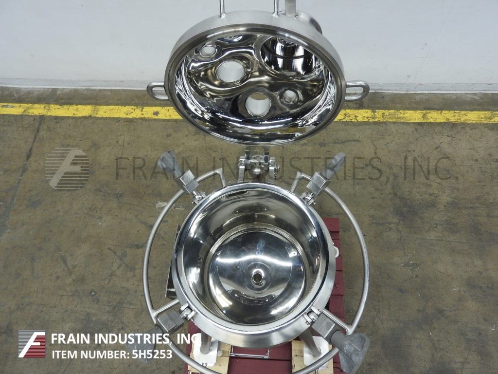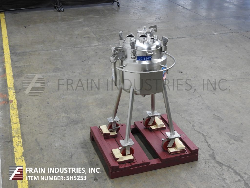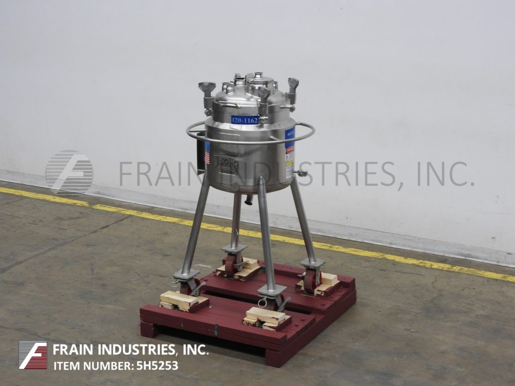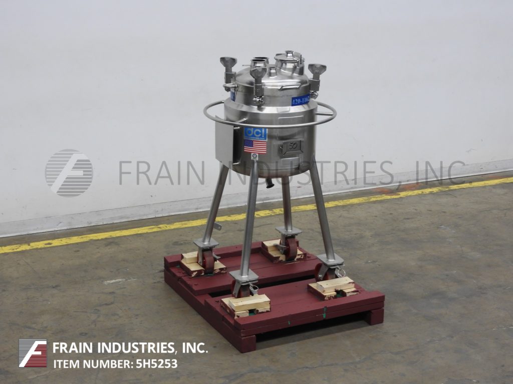 返回所有设备DCI,13.2加仑容量,316L不锈钢,绝缘,内置真空罐。船舶尺寸:16“直径X 22”深,带16英寸的直墙。配备螺栓盖板,2“OD /1½”ID三夹式风格排放,22“接地间隙。安装在(4)带脚轮的不锈钢腿