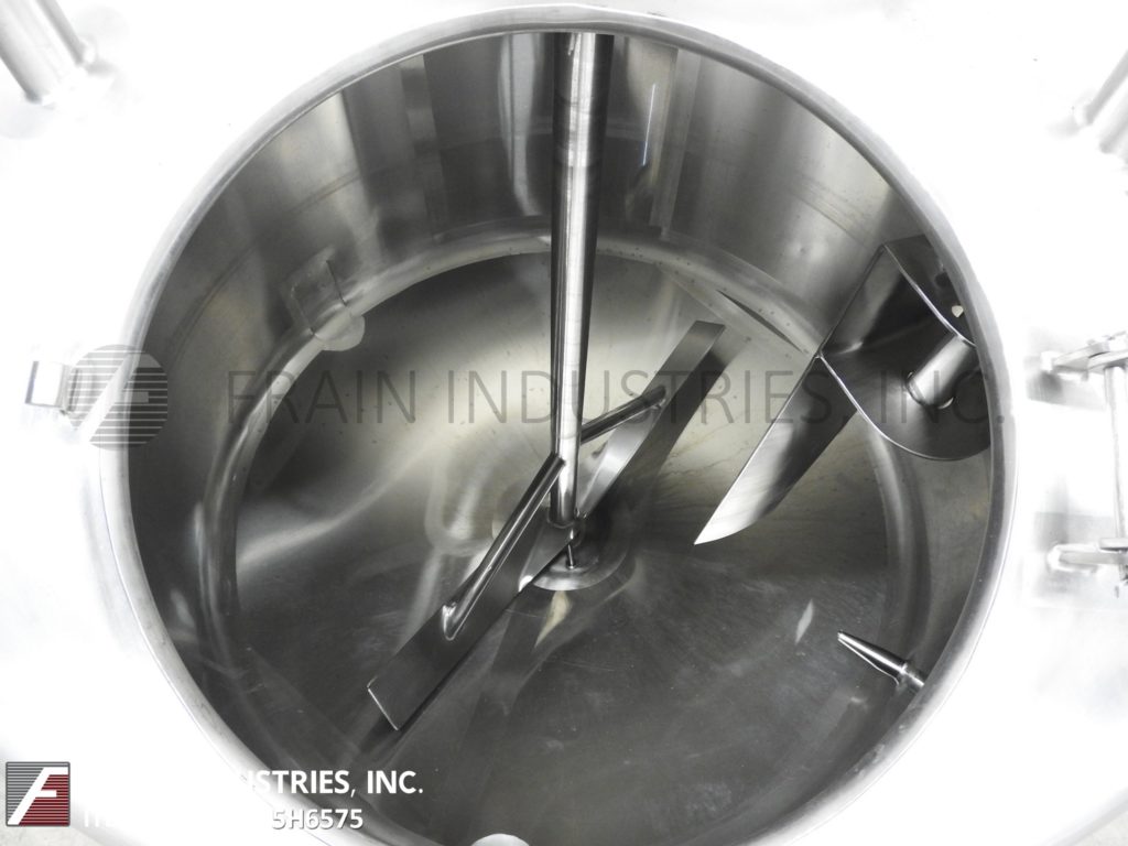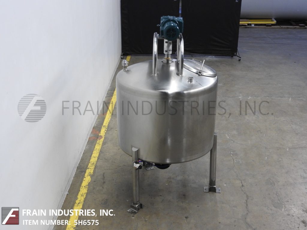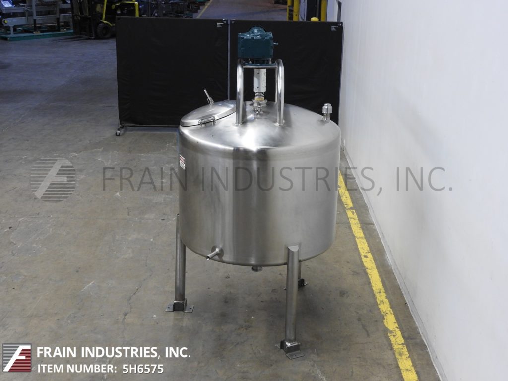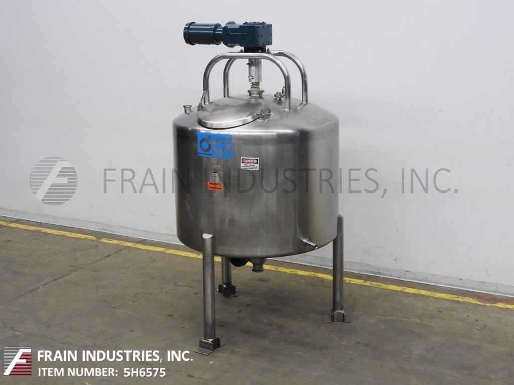 返回所有设备DCI,300加仑容量,304个不锈钢工艺罐。船舶尺寸:50“ID x 42”深,带36英寸的直墙。配备圆顶顶部,菜底,1½HP顶部安装的扫描搅拌器,6英寸宽调节挡板,18“ID顶级通道和底部气动阀门有4”OD / 3“ID I-Line样式放电,17个”地间隙“。安装在(3)腿框架上。