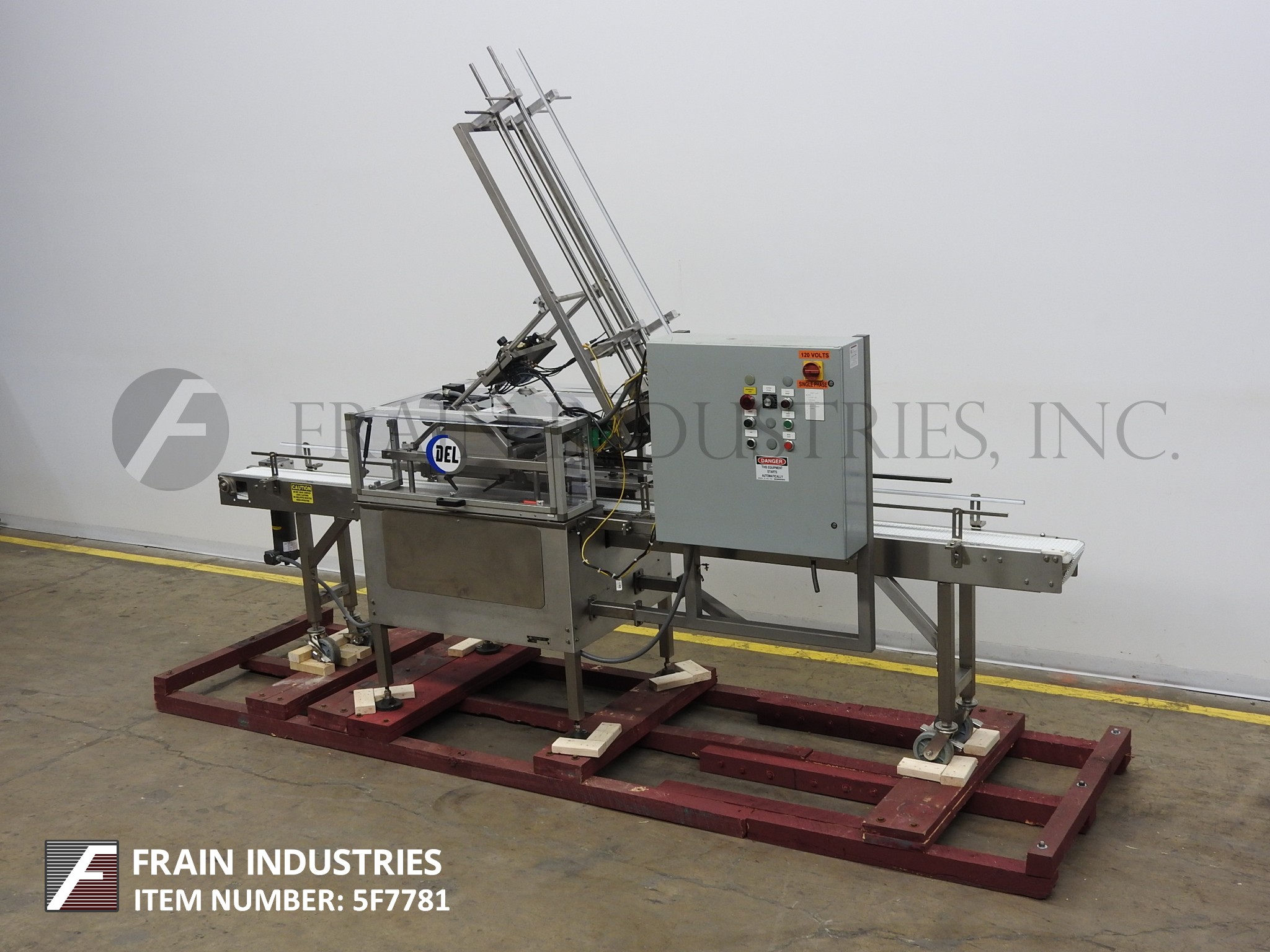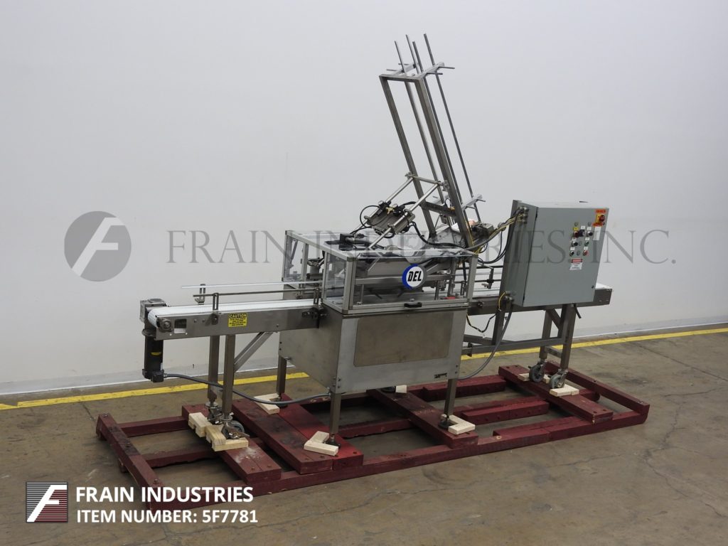 返回所有设备德尔包装。型号LCC,自动,不锈钢,内联,大容器溢盖额定每分钟20到80盖-取决于材料和应用。能够处理大桶或桶,塑料或金属直径从5英寸到12英寸的硬质注塑盖子或盖子与适当的更换部件。配备104"长x 7"宽塑料容器输送机,48"长重力馈送盖子杂志,真空摘出和动力辊压缩部分。控制面板带有A/B控制器启动/停止和e-stop,点动,复位,无箱/无盖和变速盖控制,安装在高度可调的底座上。