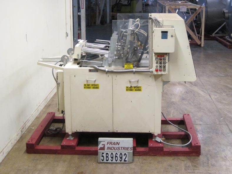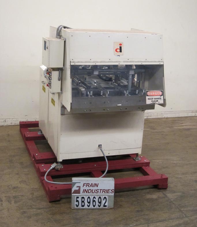 返回所有设备Delkor 752,自动,双头,托盘前额定从60到150托盘每分钟-取决于材料和应用。毛坯盘尺寸:长度可达22”;宽度可达30英寸。配备两个24"长空白托盘杂志,两个2头真空往复挑选和地方,两个梭分度系统,两个柱塞,两个托盘成型站,诺德森热熔胶系统,Lexan安全防护,和按钮控制。安装在可调节高度的腿。