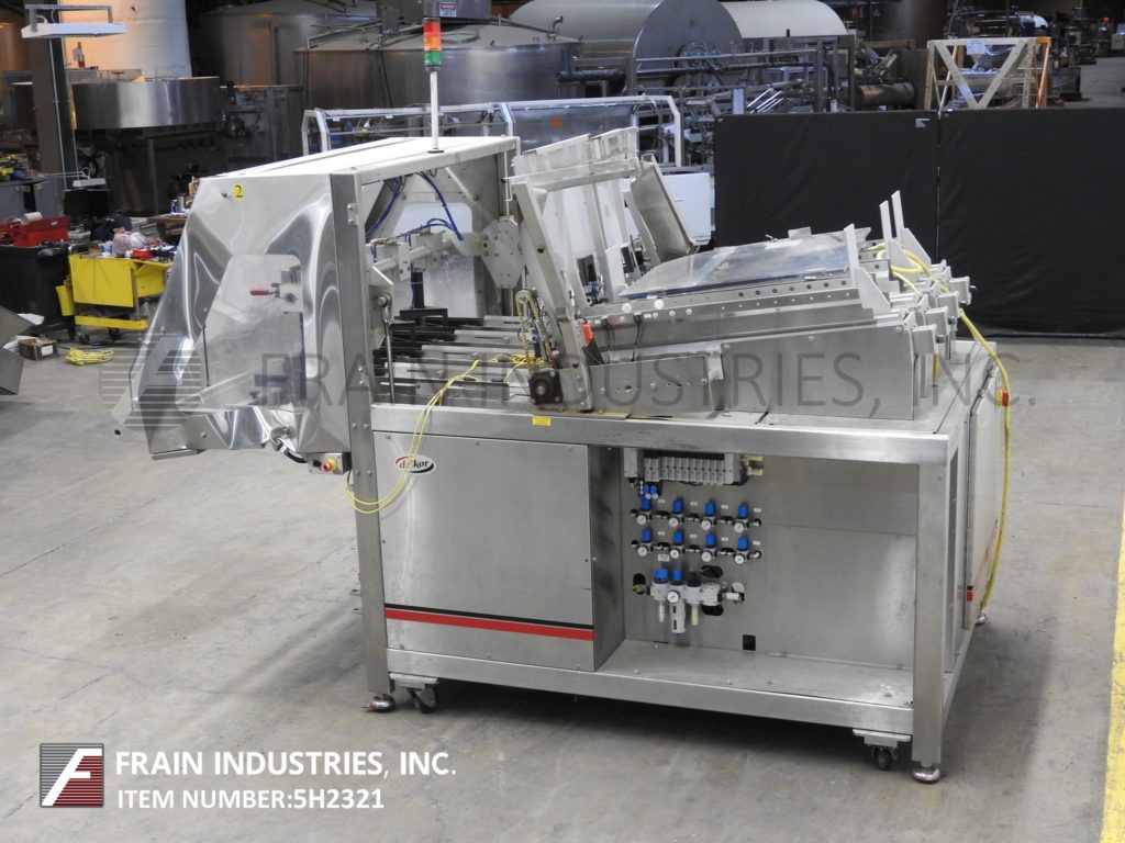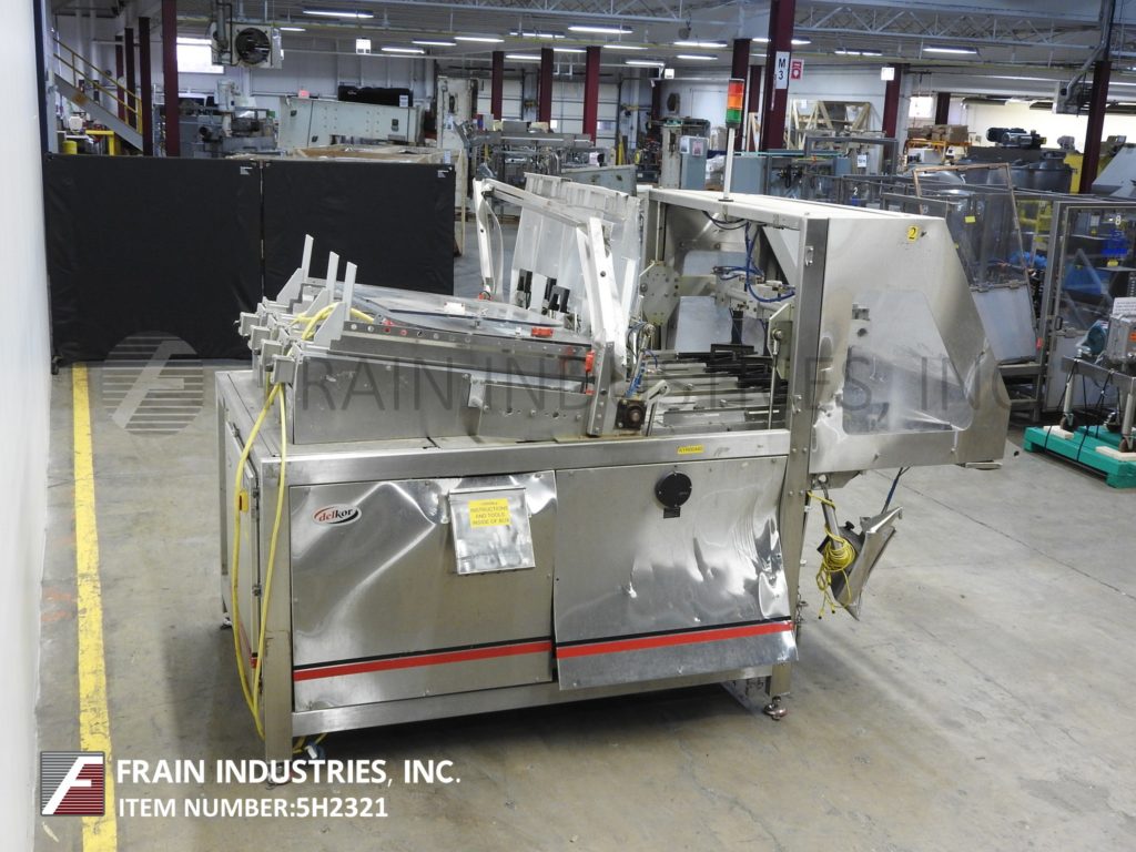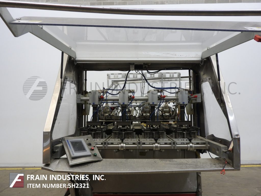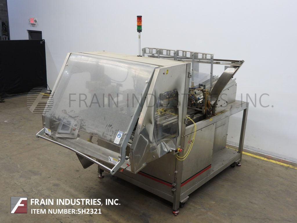 返回所有设备Delkor, TF-1504SS型,自动,不锈钢,(4)头,托盘前。根据材料、应用和机器配置,每分钟可循环10至55次。最大空白尺寸:30英寸长度;50”宽。配备(4)43“长的动力空白托盘杂志,(4)单吸盘真空往复拾取,(4)机械托盘成型头和帽密封区域与lexan提升访问安全门。控制面板采用A/B PLC, A/B PanelView Plus 700触摸屏显示和按键启动/停止控制。安装在不锈钢底座框架与锁定脚轮。