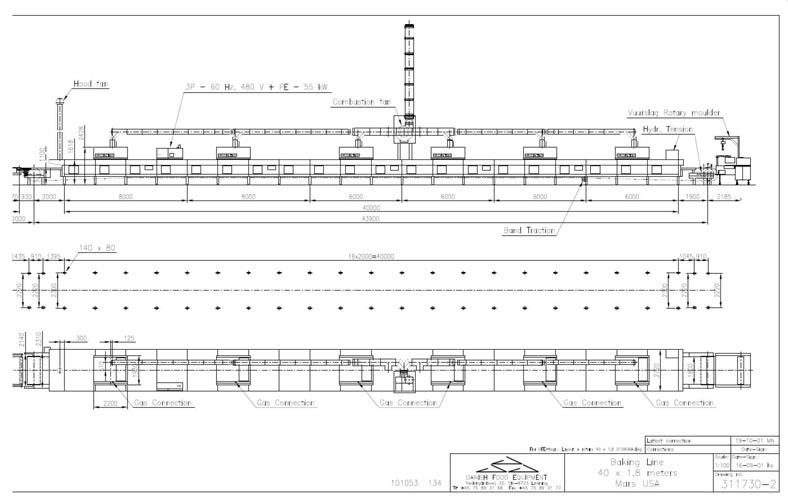 返回所有设备DFE丹麦食品设备,44米长x 1.8米宽,(6)区,直接燃气烧烤烤箱。除了大多数带有卷的面团产品,每小时速度和烘烤时间 - 特定于运行产品的类型和大小。配备(14)标准不锈钢电镀隧道段,(6)加热塔段(1)驱动滚筒输出进料端和(1)致电辊在馈电端以金属带带的直径测量74“长×34”(不是现在))。(1)皮带诱导(1)皮带刷清洁装置的液压装置,(1)在饲料和(1)输出排气罩(1)主控制面板,直接加热燃气燃烧器,放置在烘烤输送机上和烧成输送机下方加热烘烤室,带零气压和鼓风机通过每个燃烧器的喷射器发送受控空气流量,用于正确的气体量,保持烤箱的正确烘烤温度,并且温度范围为0至400°F。顶部安装的各个控制器对于每个区域,是模块化设计的。安装在多腿基框架上。