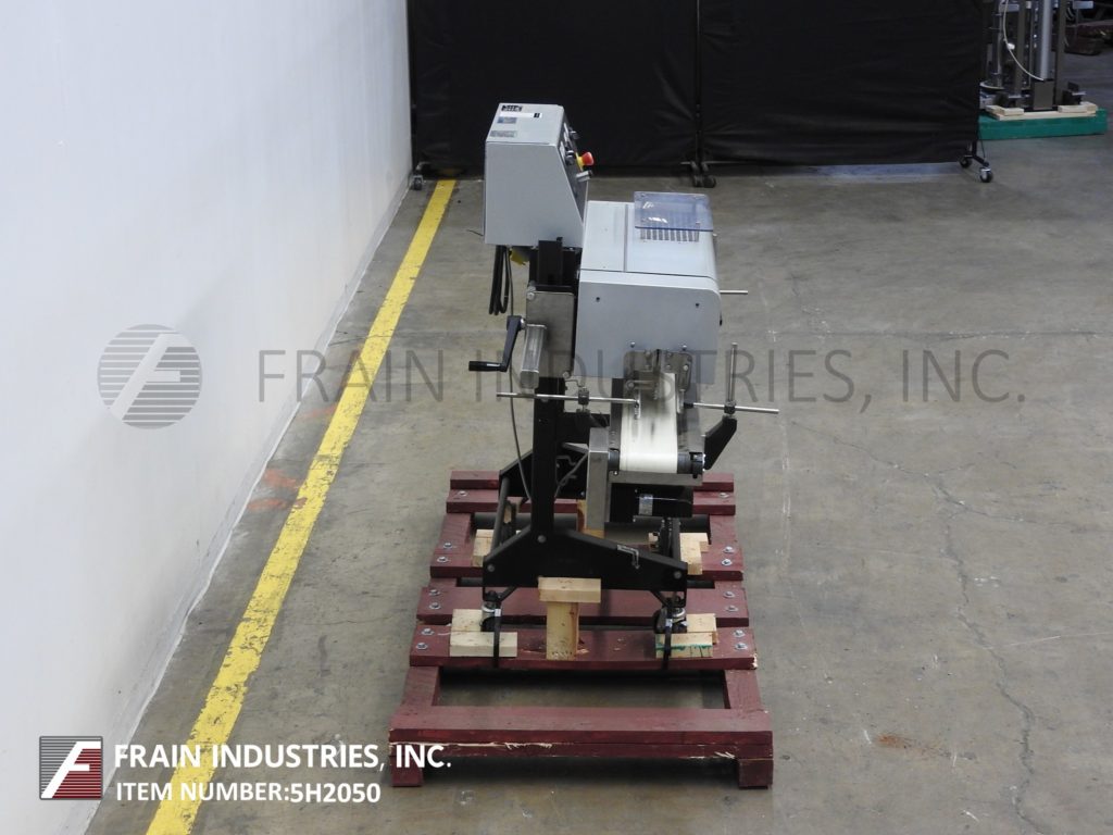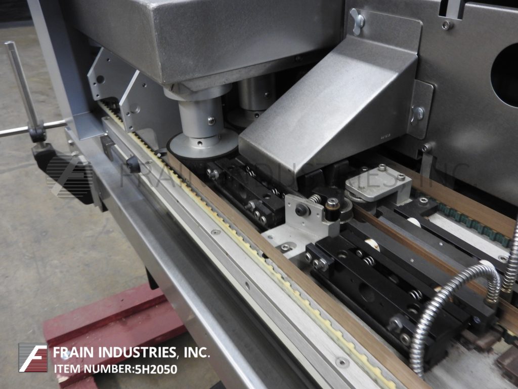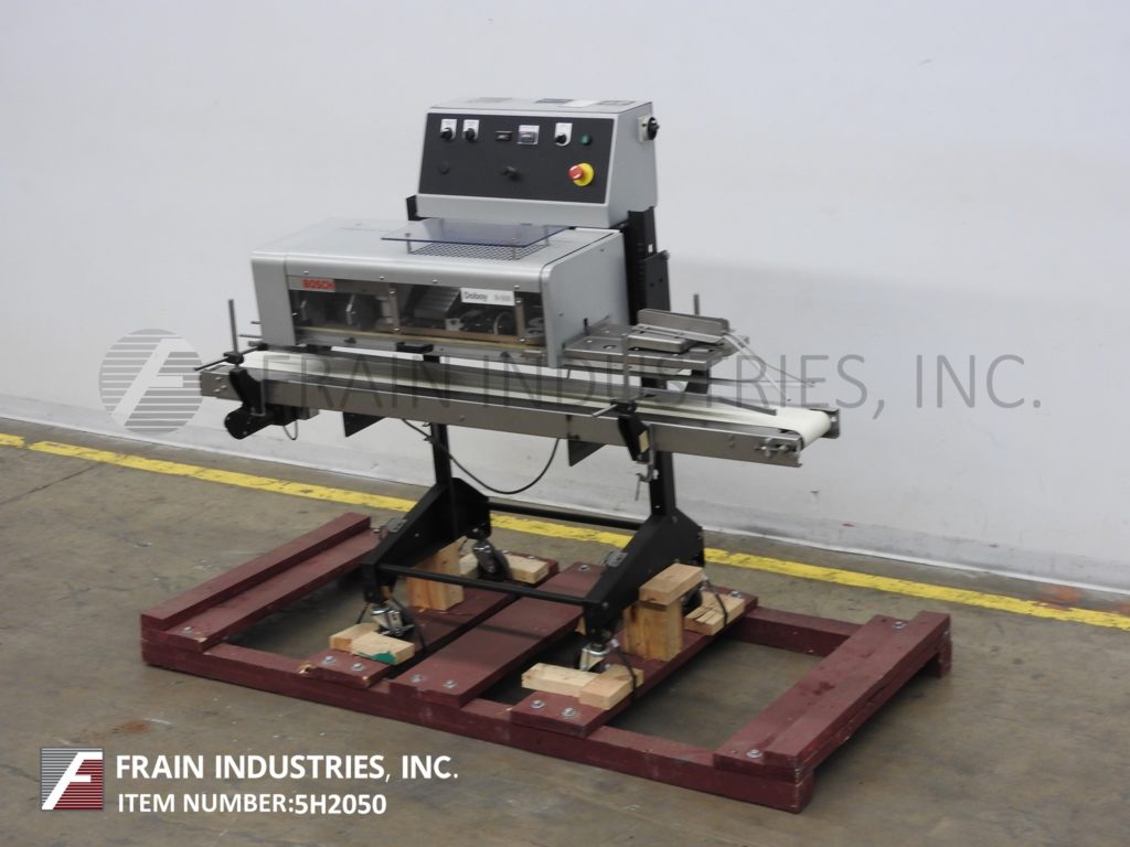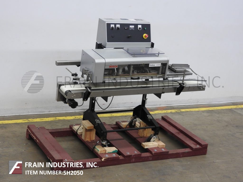 返回所有设备Doboy型号B500带封口机额定从0“到750”每分钟袋的数量-取决于材料,应用,机器配置和操作者灵巧。配备1"宽特氟龙载体带,角度,倾斜离开密封头,与(1)套3/4"宽热密封条和(1)套3/4"宽空气冷却条。控制面板带有热区温度控制器,机器和输送机的速度,e-stop和状态灯条。安装在高度可调框架84"长x 6"宽的产品输送机和锁定脚轮。