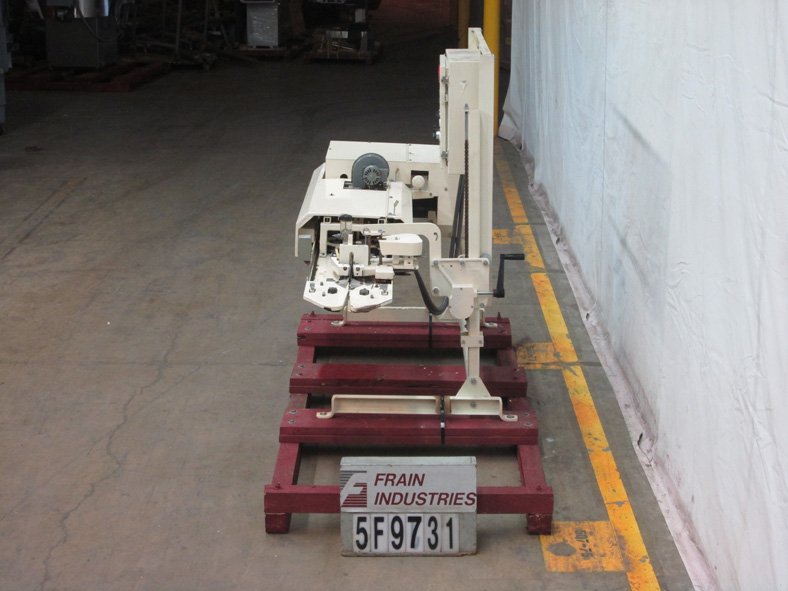 返回所有设备Doboy Model CBSCH,左撇子,连续,连锁带密封剂,额定100“至425”每分钟,袋子数 - 取决于材料,应用和操作员灵活性。密封宽度:1/2“。配备(2)加热套和(2)套冷却杆,带有角度的密封倾斜驱动头,1”宽金属带,翻转安全盖和链条,以便更好的袋子支撑并且手动曲柄高度可调节微调器。控制面板具有两个可变温度的热控制器,带有开始/停止按钮控制并枢转的支架上以密封在垂直于水平位置。用脚轮安装在手曲柄高度可调框架上。
