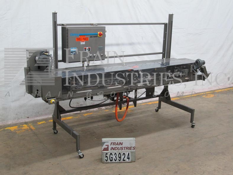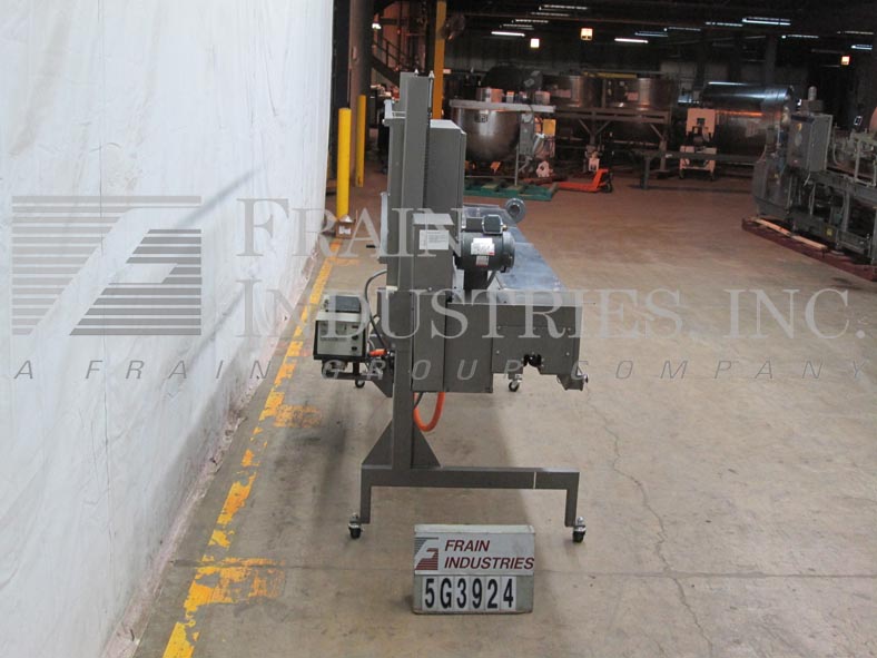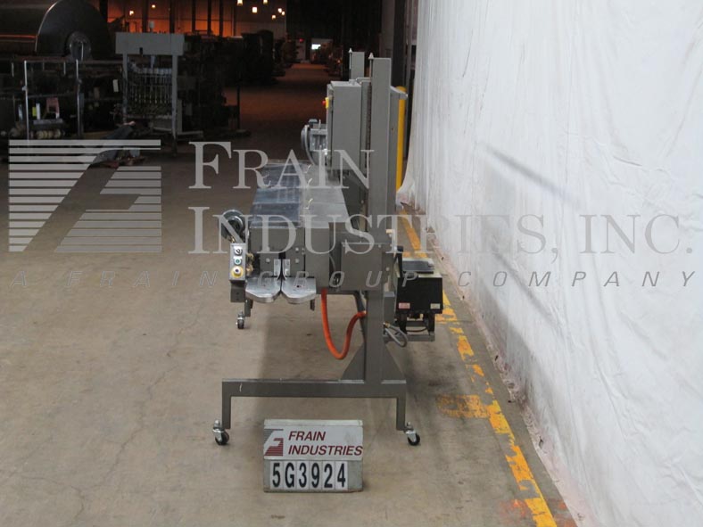 返回所有设备Doboy型号GS1000S,高速,安装在输送机,双折叠,热熔,袋封口机额定从0到100英尺/分钟,袋子数量 - 取决于材料和应用。包尺寸范围:3磅至20磅,袋子宽度:3.5“至15”。配备顶袋载体链,外胶密封站,带热熔胶涂抹器,(2)3/4“折叠和42”压缩部分,旋转修剪器和手动曲柄高度可调节。控制面板采用Run / Jog,胶枪,胶水开/关开关,温度控制与Lexan安全保护。安装在(4)腿高度可调框架上。