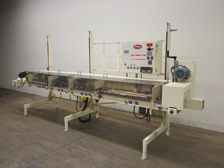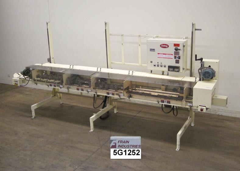 返回所有设备Doboy型号GS1000S,高速,安装在输送机,双折叠,热熔,袋封口机额定从0到100英尺/分钟,袋子数量 - 取决于材料和应用。包尺寸范围:3磅至20磅,袋子宽度:3.5“至15”。配备顶袋载体链,外胶密封站,带热熔胶涂抹器,(2)3/4“折叠和42”压缩部分,旋转修剪器和手动曲柄高度可调节。控制面板已运行/慢跑,启动和e-stop按钮,胶枪,胶水和胶水开关,温度控制和lexan安全守卫。安装在(6)腿部框架上