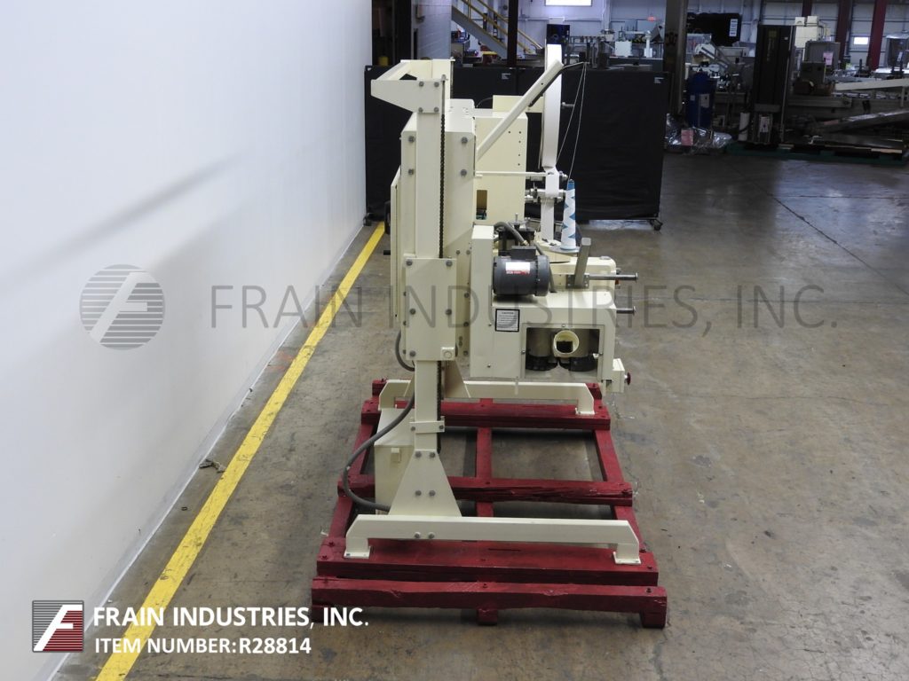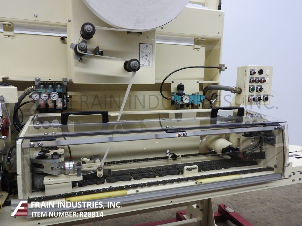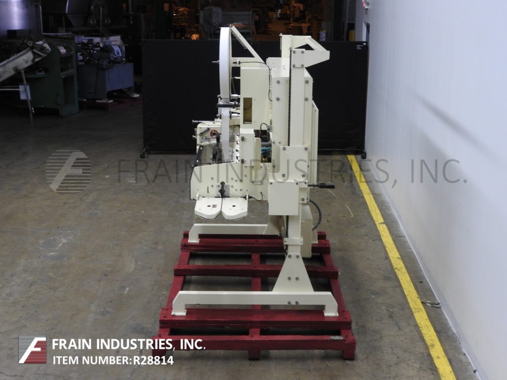 返回所有设备Doboy Model TGS-900,高速,微处理器控制,袋针针缝制系统的快速速度高达75',每分钟袋数 - 取决于材料和应用。配备D-97高速缝纫头,带有摆动针,油浴润滑,并将1“到2-1 / 2”磁带宽度。为单个或多壁纸袋提供25磅至100磅的缝制胶带。单位夹具在进料中的夹具,然后通过机器穿过扁钢链带上的机器,然后装饰袋顶,送纸胶带在袋上,切割,然后穿过胶带和撕裂条连接。安装在基础重型“U”形状框架上。