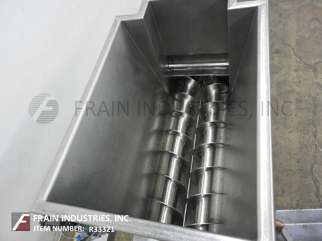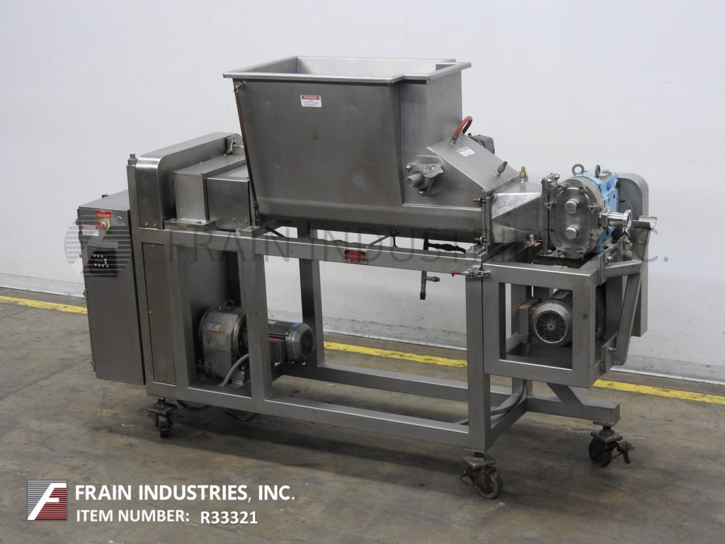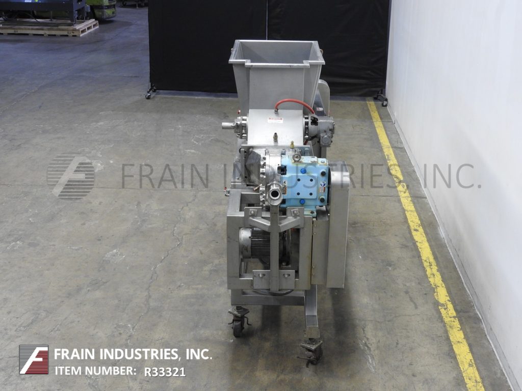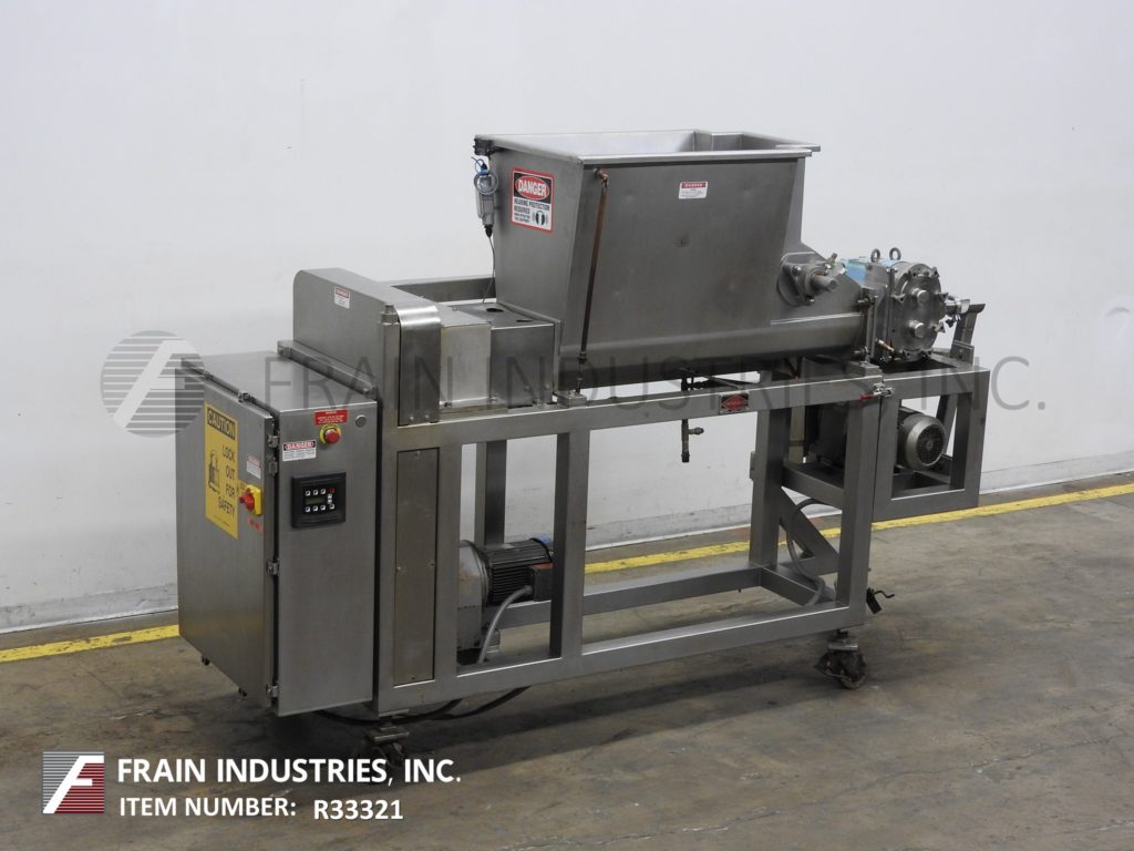 返回所有设备Doing,型号5PFL,不锈钢,双螺杆泵送系统,每小时磅产品 - 取决于材料和应用。船舶尺寸:31“长度; 22”,宽度;27“深度。产品粘度:高达1,000,000 CPS。配备低压夹套不锈钢产品料斗,(2)7”OD X 46“长的不锈钢供给螺钉,由5 HP驱动器提供动力,Waukesha型号64个正排量泵5 HP驱动器供电,具有2½“OD / 2”ID Tri-Clamp放电,具有49“地间隙。安装在带有锁定脚轮的不锈钢框架上。