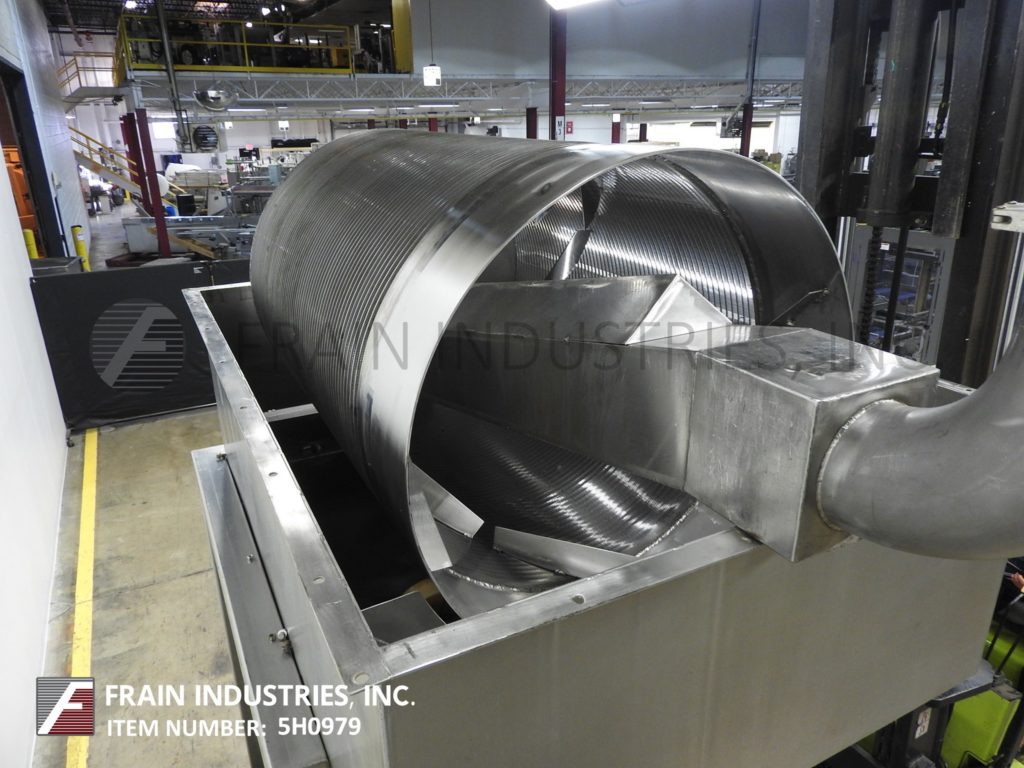 返回所有设备Dontech Industries,型号为-34,不锈钢内部送旋转鼓屏。配备6½“OD /5¾”ID三夹式电荷端口,36英寸直径x 64“长旋转式鼓屏,由¾惠普驱动器提供动力,18”x 13“固体放电,94”地间隙,51“长x 48“宽x 64”深液体收集箱用(1)3½“OD / 3”ID Tri-Clamp底部排水管,22“接地间隙和(1)4¾”OD / 4“ID底部侧面放电,30”接地清除。额定材料,应用和机器配置。