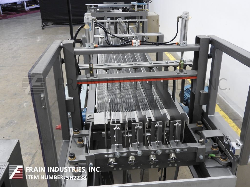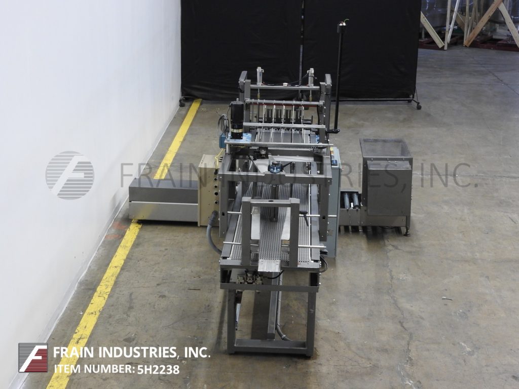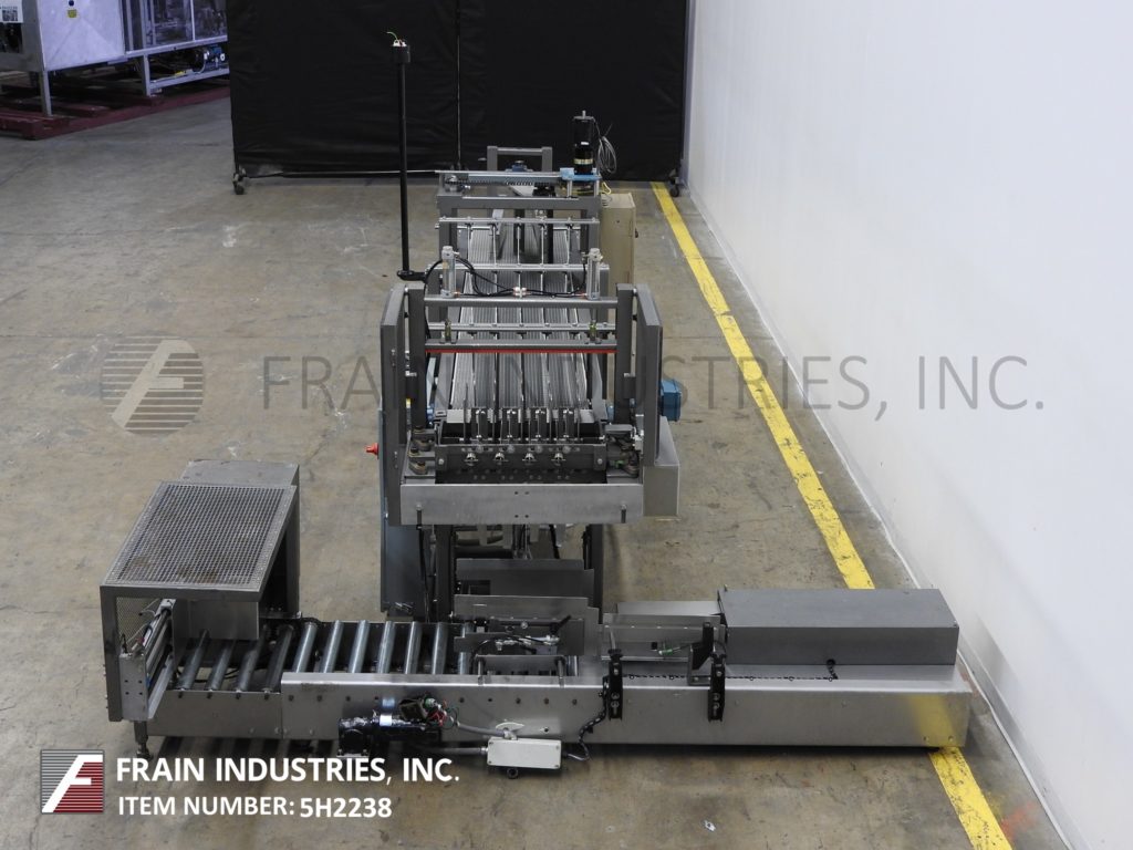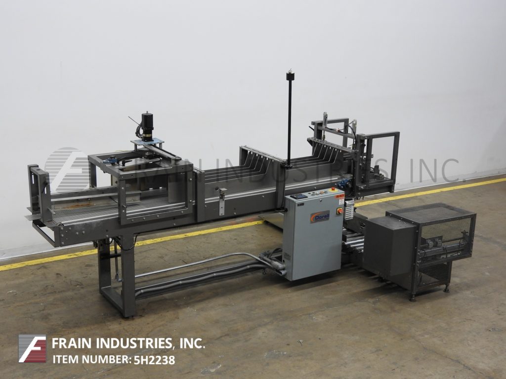 返回所有设备多瑞,DP-100型,自动落箱包装机。根据材料,应用,包装模式和机器配置,每分钟可装5 - 20箱。Case size range: 5" to 18" in Length;4"至13"宽度;深度5英寸到12英寸。配备了一个18“宽x 115”长的顶部产品在饲料输送机与步进驱动1到4架空通道,可调节的通道导轨,14“宽x 50”长的底部机箱输送机,与上升产品软提升箱包装网格和气动案例分度。控制面板带有AB控制器和AB PanelView Plus 600触摸屏显示。