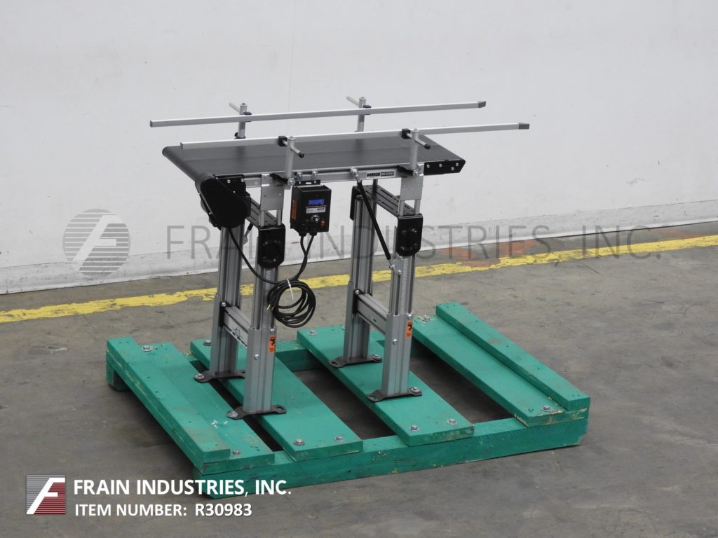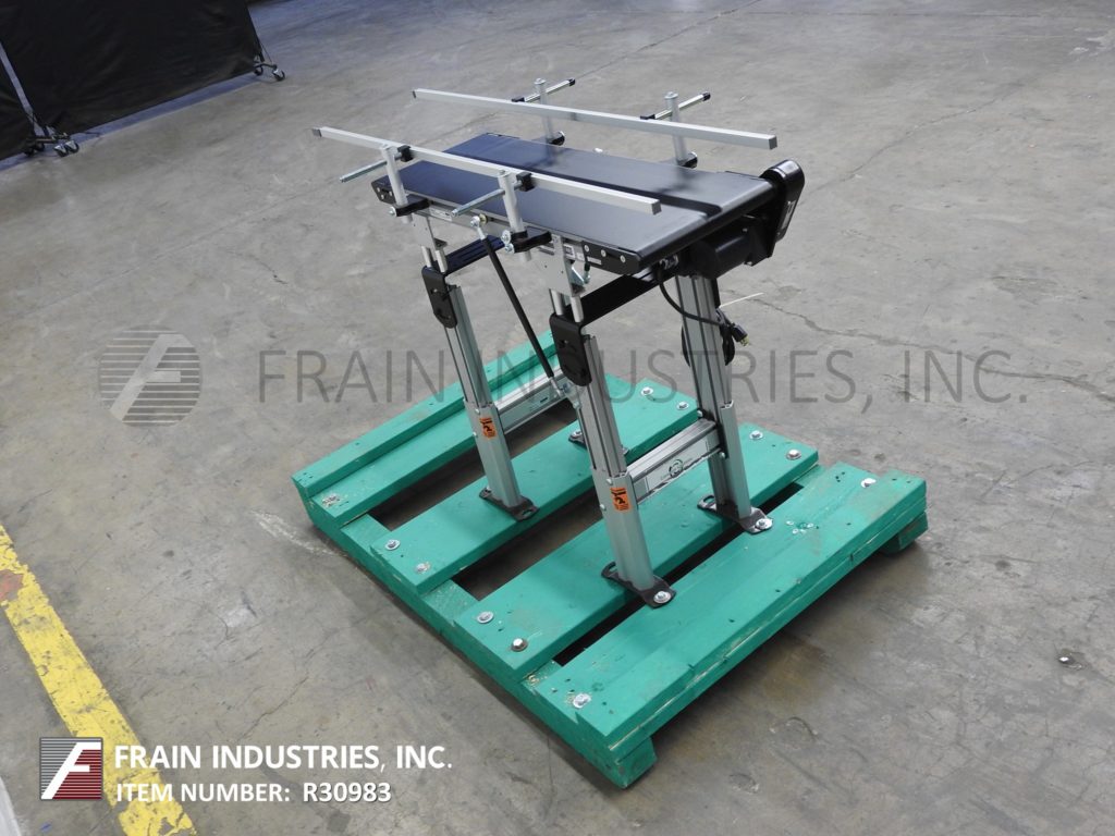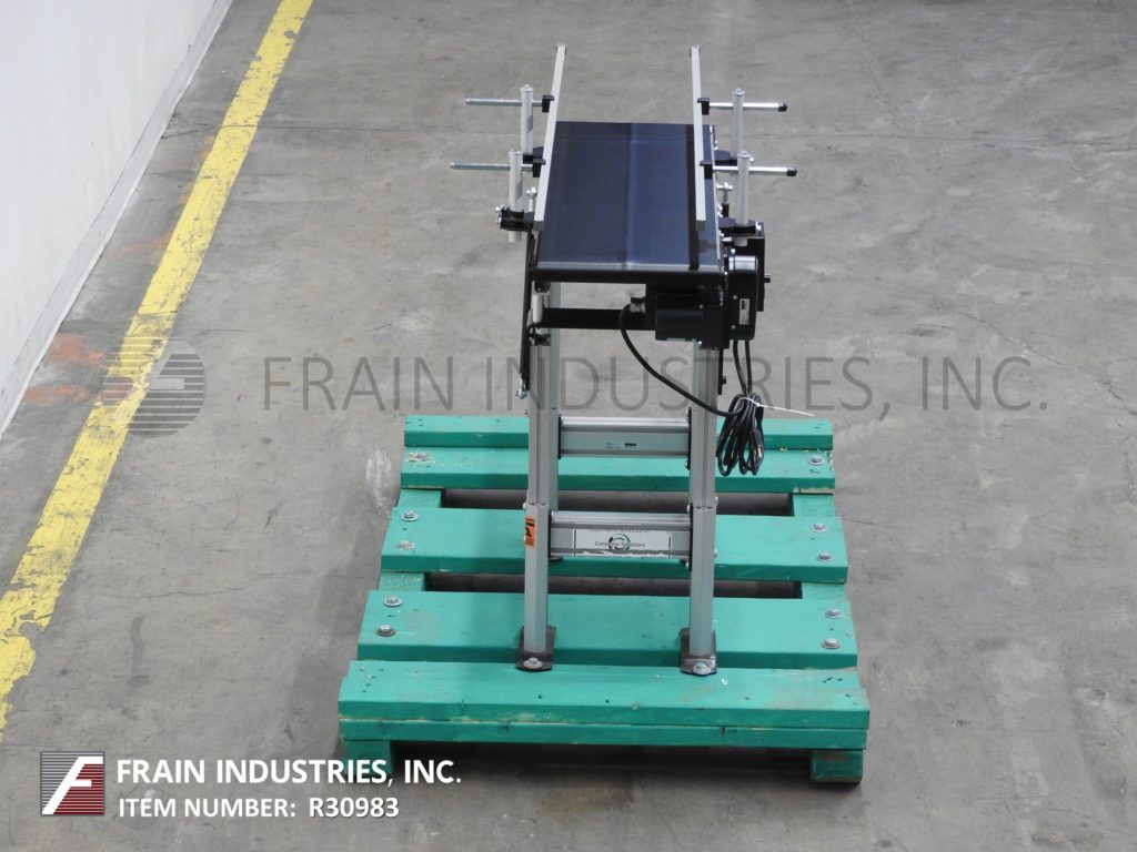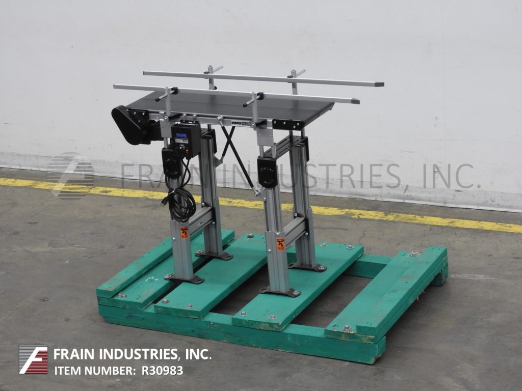 Dorner,型号2200,铝制框架带式输送机。配有12英寸宽X 36“长带,带有28”至36“进给/放电范围和变速控制器。