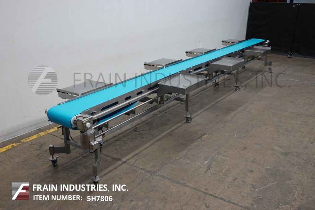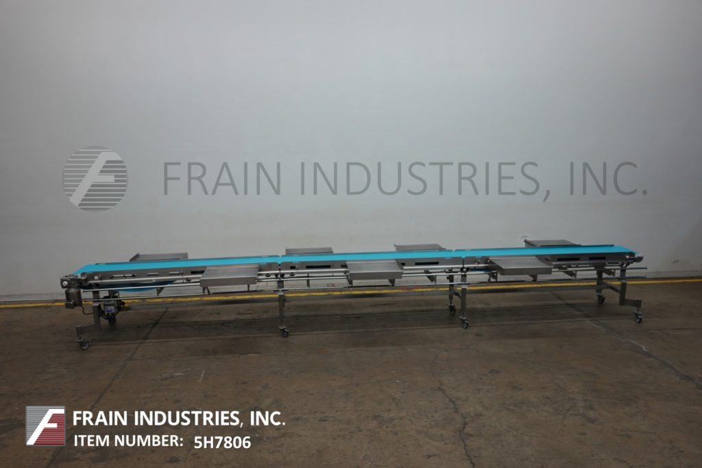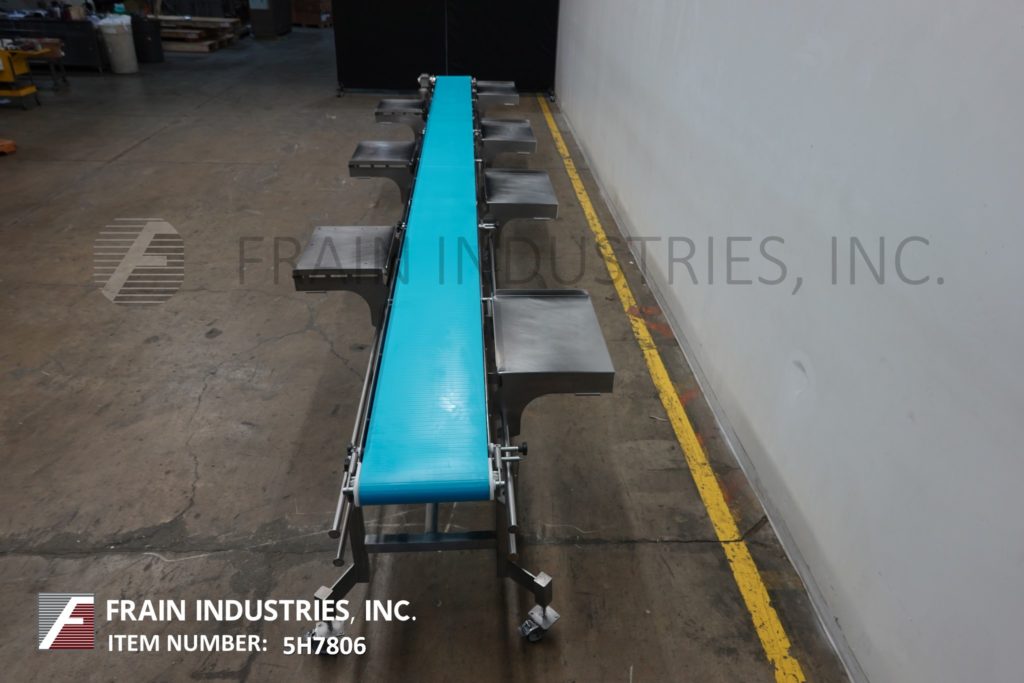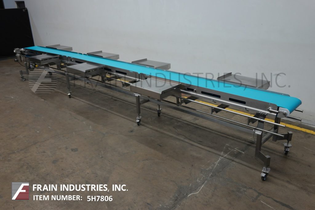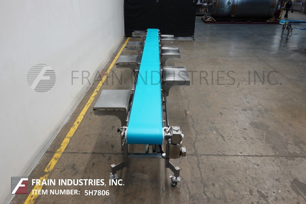 Dorner, 16“宽x 300”长不锈钢带式输送机。16"宽,300"长食品级皮带,进料和出料高度为37"。配备了1 / 2马力驱动器,变速控制,可移动的侧安装包表安装在锁定脚轮