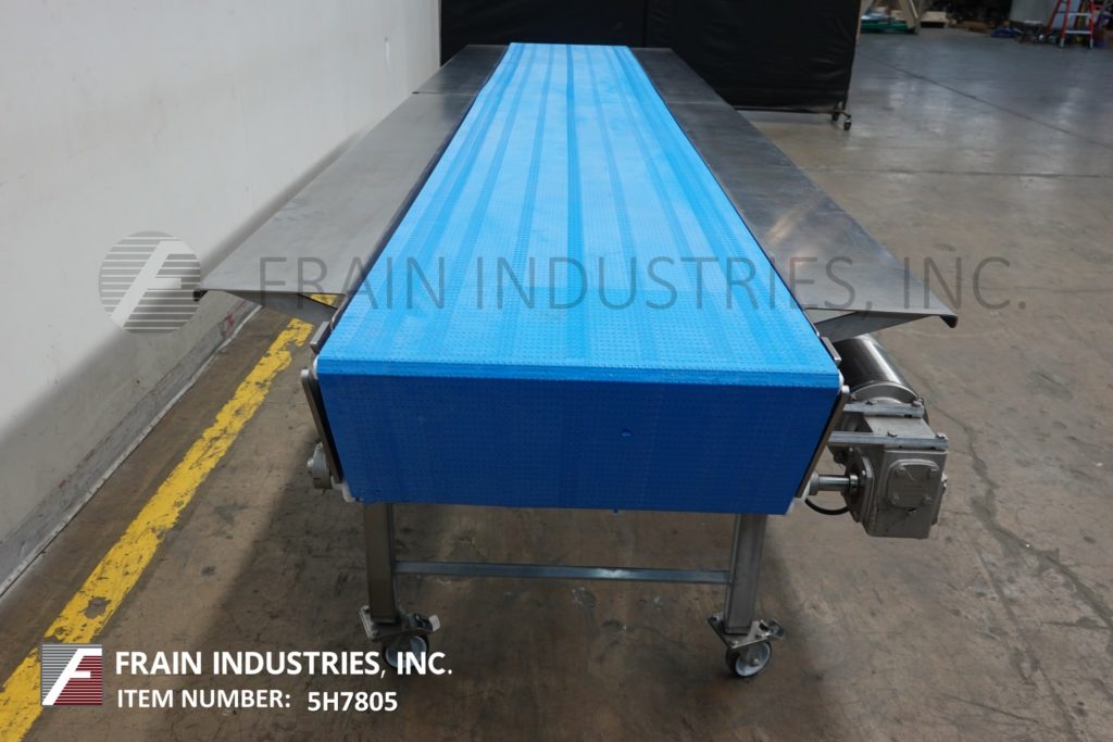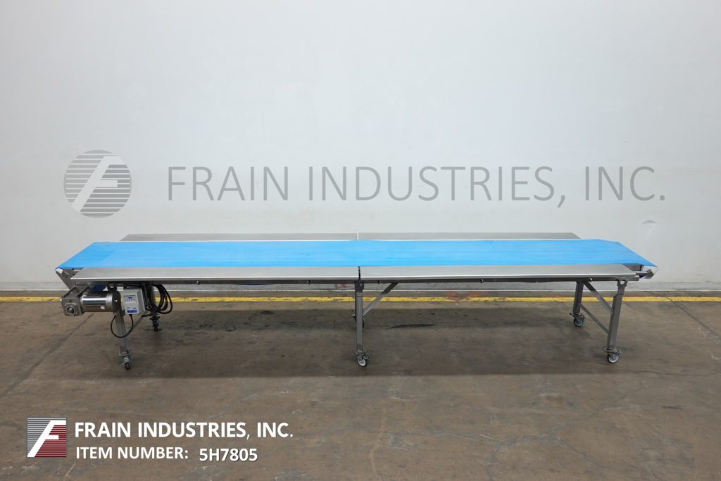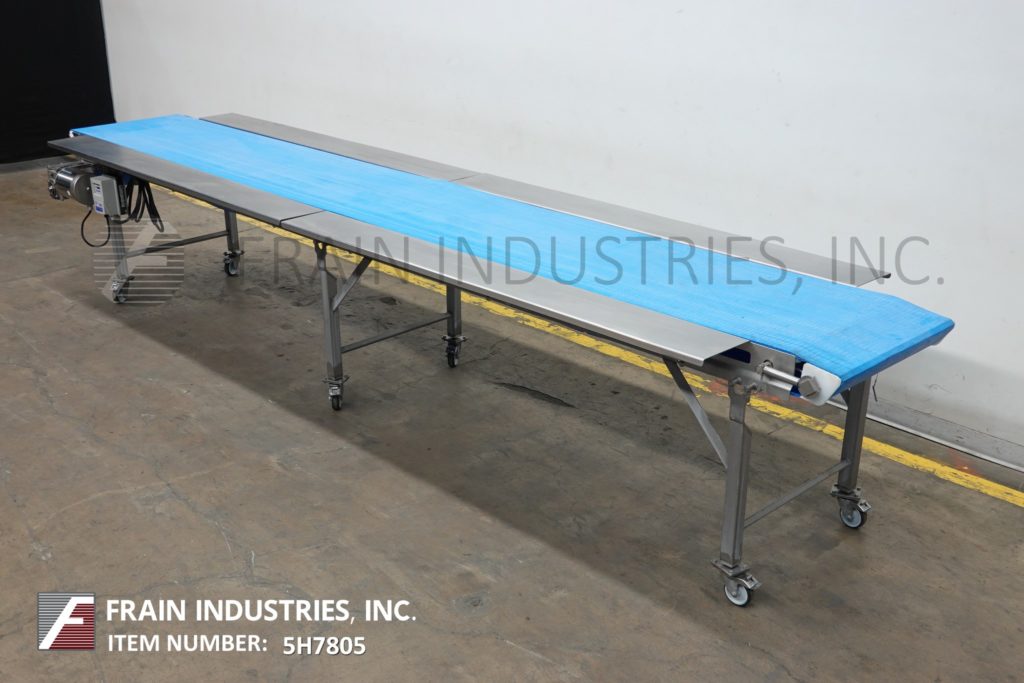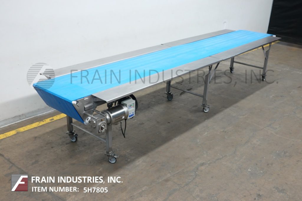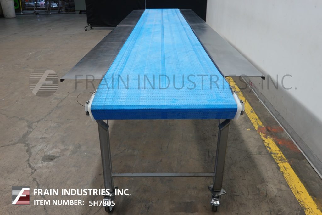 返回所有设备Dorner,26“宽x 190”长不锈钢带式输送机。26“宽和190”长的Intralox传送带的进料和出料高度为38”。配备½HP驱动、变速控制,(2)168“长x 9”宽的侧装式包装台。安装在锁定脚轮上