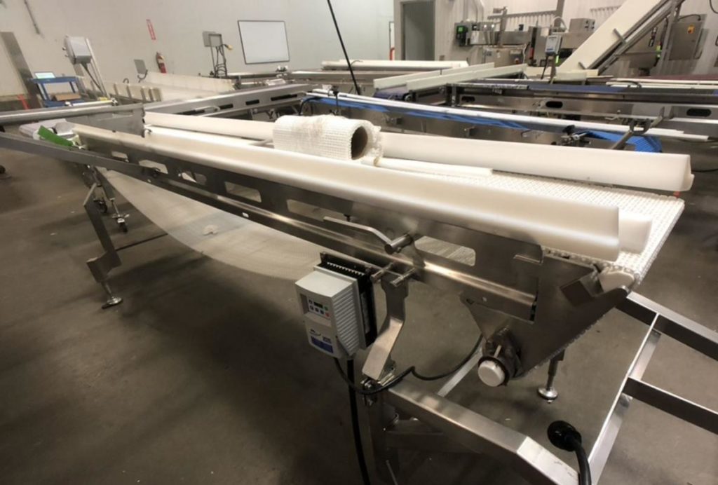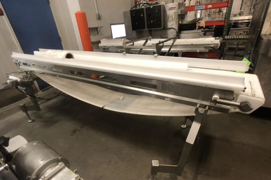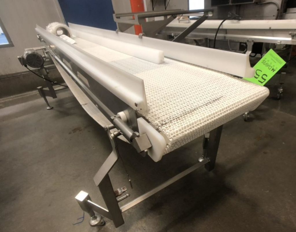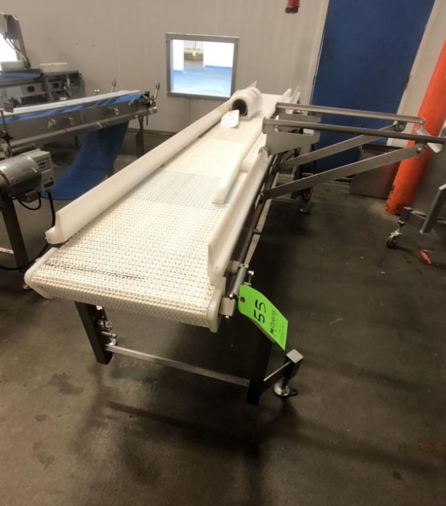 Dorner, 16“宽x 120”长不锈钢桌面输送机。16英寸宽和120英寸长Intralox带有饲料和排放高度37英寸。配有变速控制装置,安装在调平腿上。