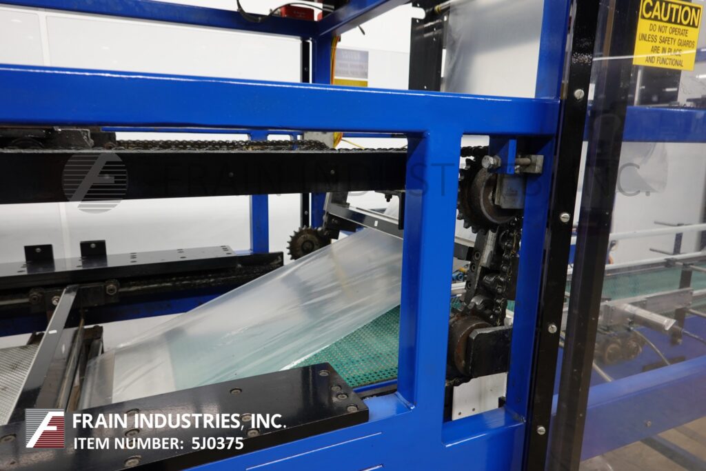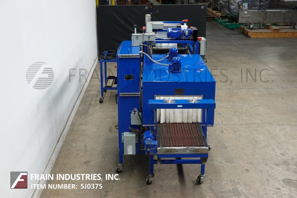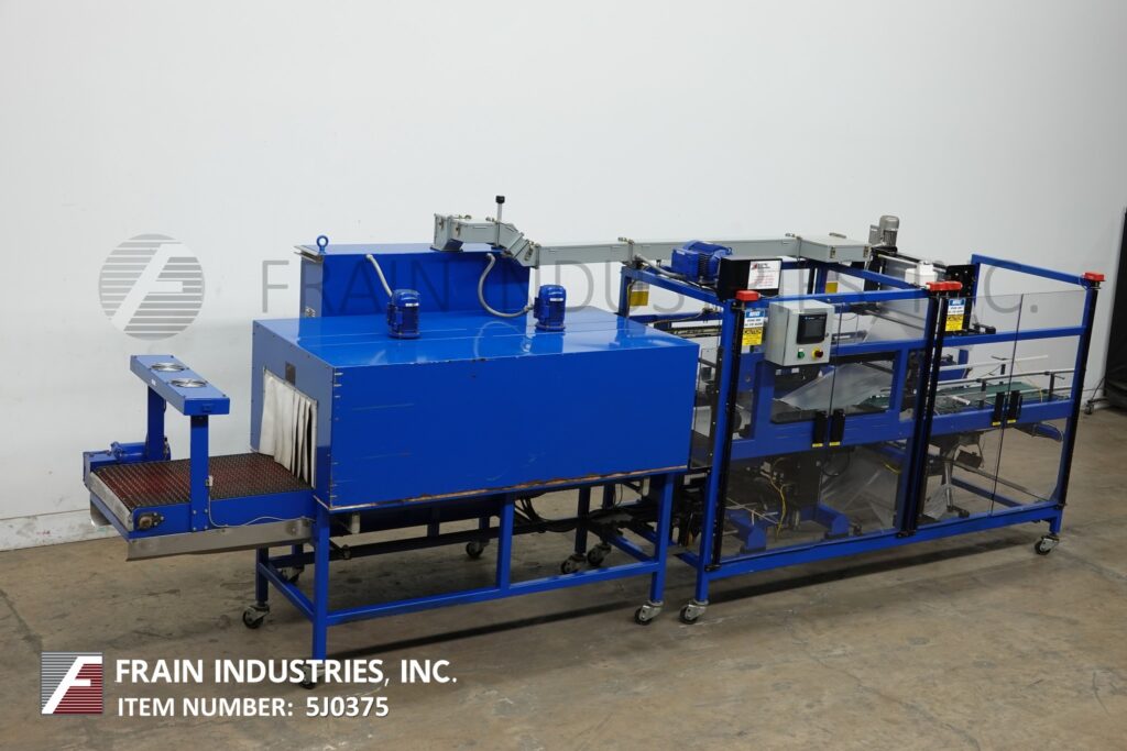 返回所有设备EDL,内联,连续运动,捆绑器和集成收缩隧道。根据材料和应用,每分钟的额定值高达35个捆绑包。产品尺寸范围:长度x 3“至14”的宽度x 3“至13”的高度为5“至25”。配备了84英寸长x 14英寸宽的进料输送机。气动门索引,25英寸宽的热脉冲密封下颚设置在30英寸中心溪流飞行杆,侧面安装的胶片架上,薄膜的宽度高达24英寸; 16英寸OD。单个区域收缩隧道,带24“宽x 122”长弹性链路传送带和宽度x 15英寸的18英寸高度孔和78英寸长腔室,带有(2)顶安装的鼓风机电动机。控制面板具有带触摸屏HMI的Allen-Bradley控制器。安装在重型框架上,带有状态灯条和互锁的安全保护。