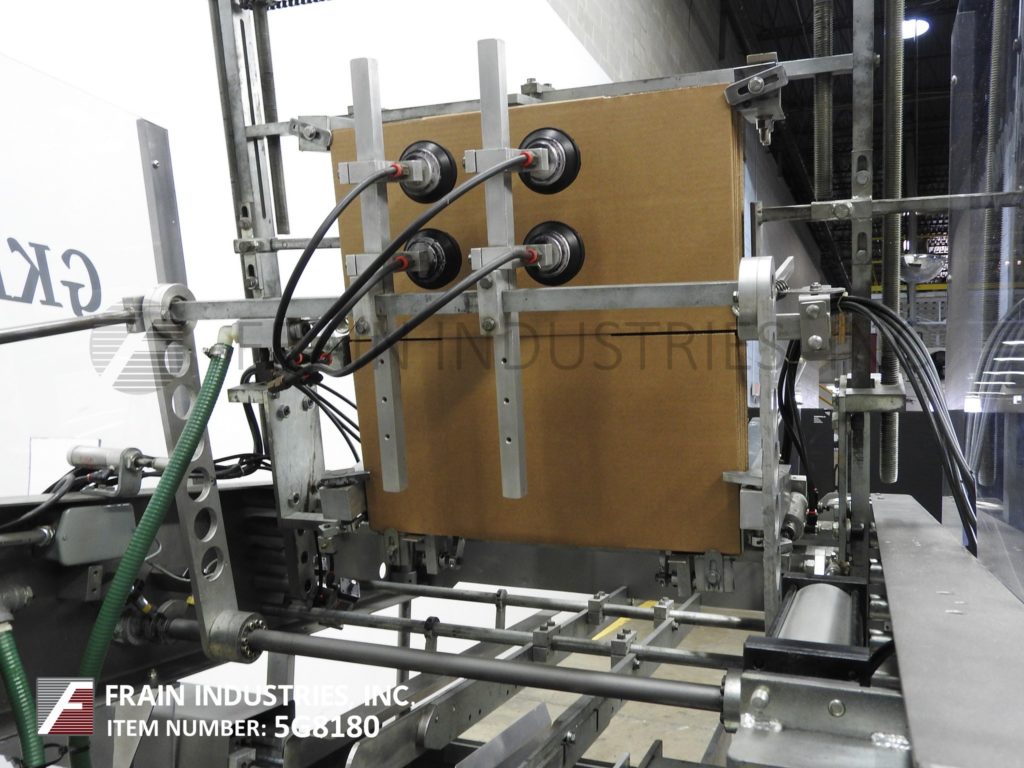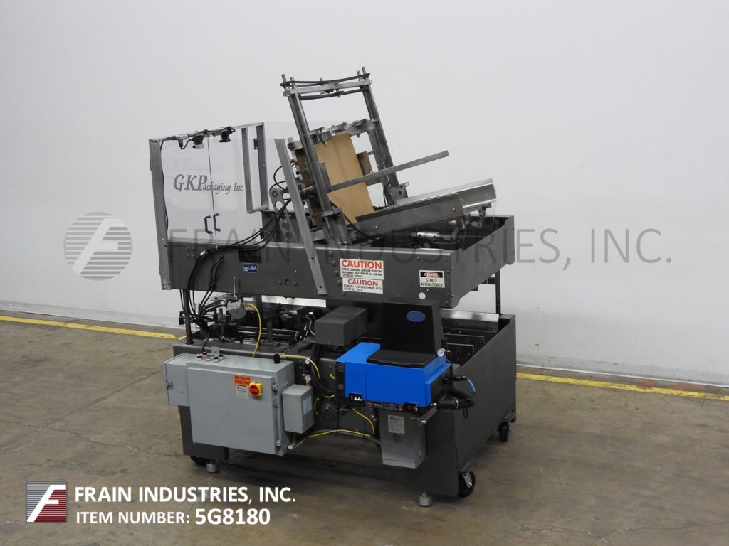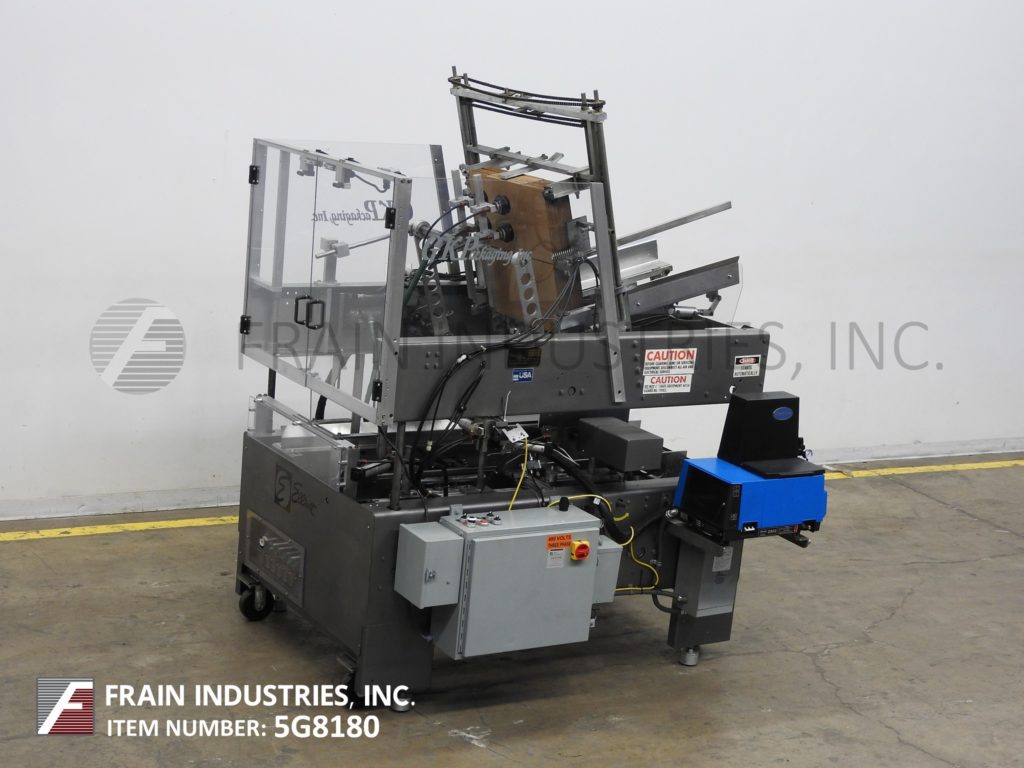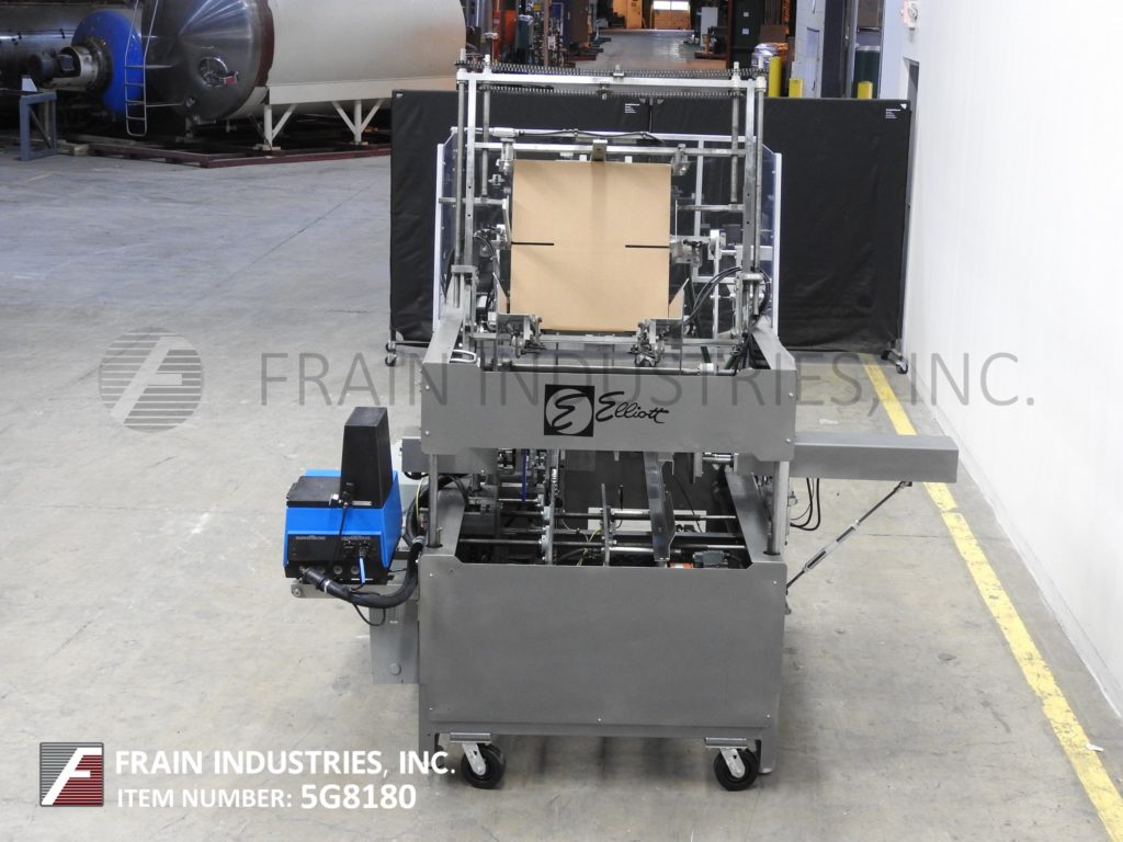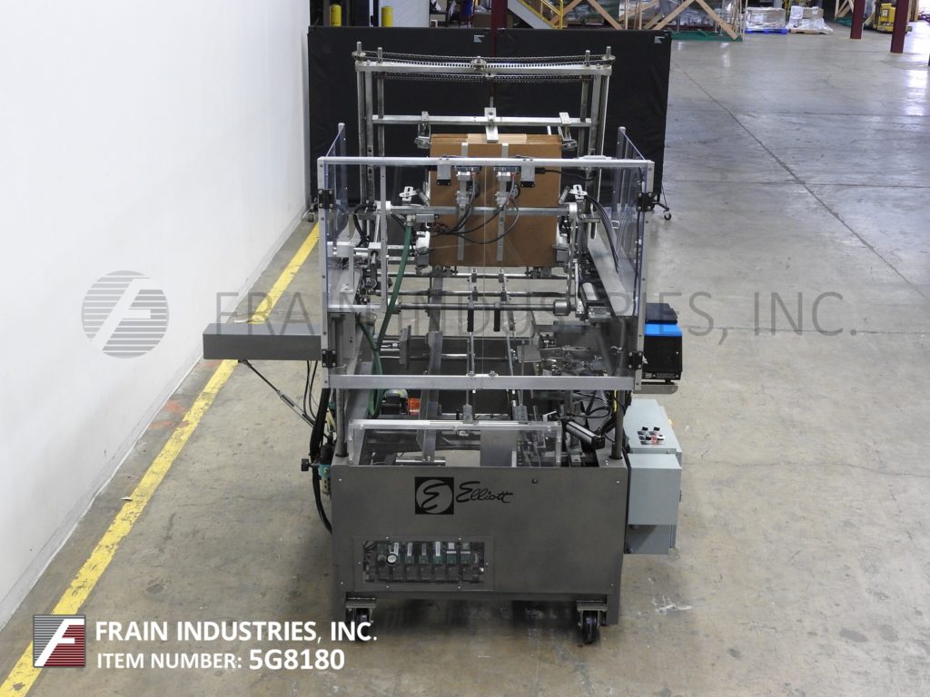 返回所有设备Elliott,型号93-06-G,自动,紧凑,壳体竖立器和底部胶水封口机。每分钟1至10件案例 - 取决于材料,应用和机器配置。案例尺寸范围:长度为6“至18”;6“到16”的宽度;高度6“至16”。配备37英寸长的空白盒式杂志,(4)吸盘往复式真空镐和放置,链箱转移系统,较小的襟翼更近,盖板犁,Nordson热熔,是手曲柄可调。控制面板带AB控制器,按按钮开始/停止,e-stop和开关,用于胶水开/关和真空打开/关闭。安装在重型基础框架上。