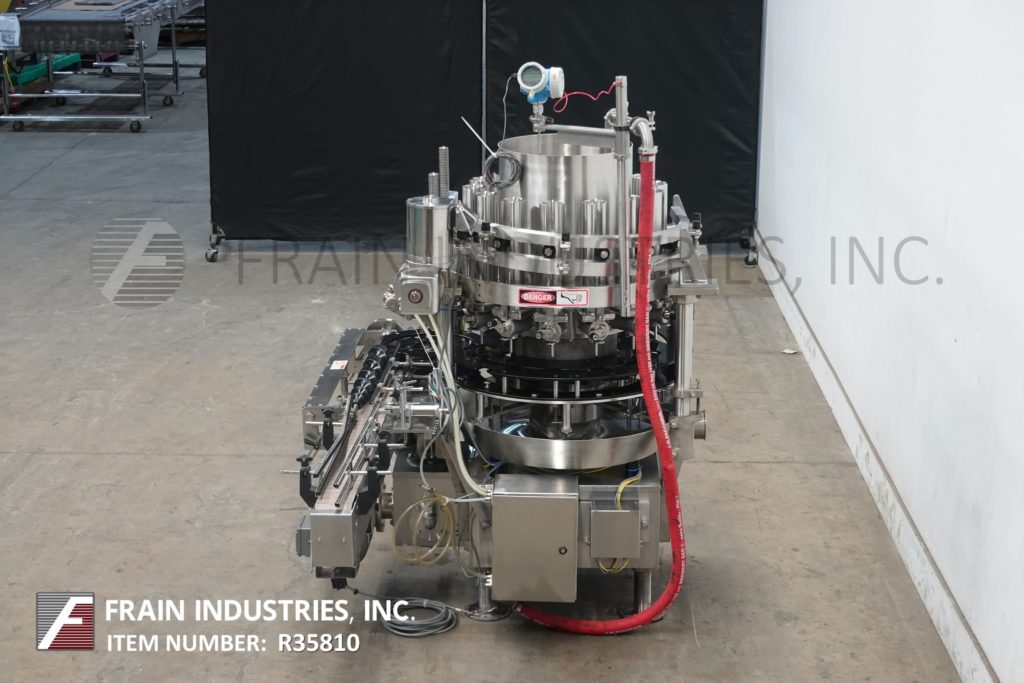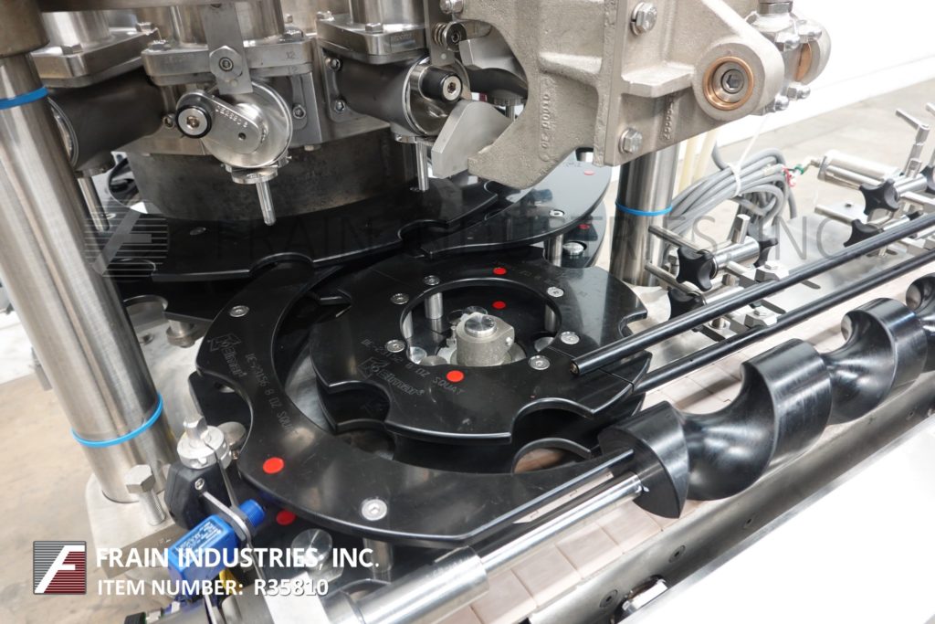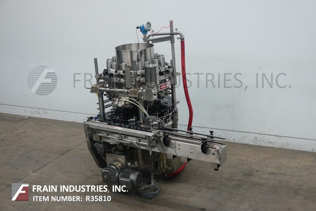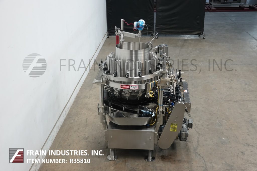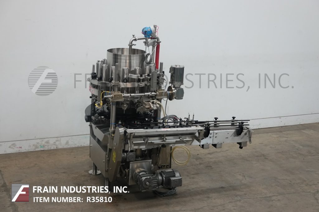 Back to All EquipmentElmar, Model RPE-514I LH, Automatic, 14 head rotary piston filler rated from 50 to 300 containers per minute – depending on materials and application Stainless steel contact parts. Equipped with 4½" wide x 64" long infeed conveyor, worm screw to star wheel indexing, 14 filling heads set on 6¼" centers, 2¾" diameter x 6" long pistons, and ½" OD filling nozzles maximum fills of 20 fluid onces. Container size range 2" to 4¼" OD and 19" diameter x 25" deep filler bowl with maximum capacity of 25 gallons. Can handle plastic, glass, composite and tin containers with proper change parts. Mounted on (4) leg frame.