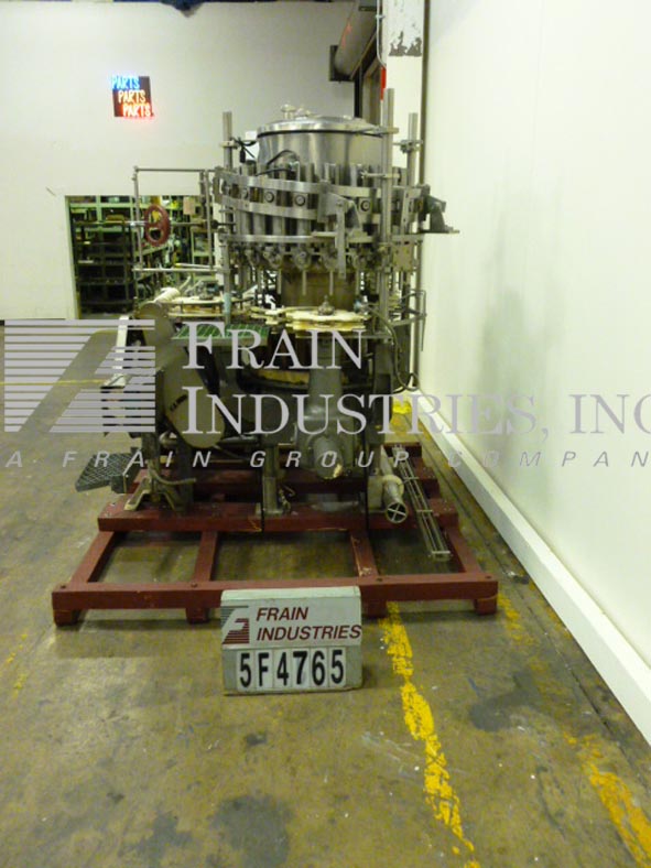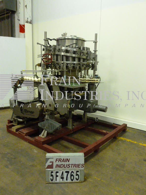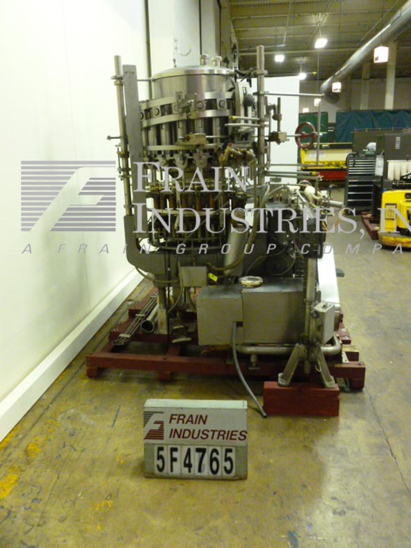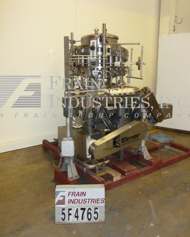 返回所有设备Elmar / Votator型号RPE1421,自动,21头旋转,不锈钢,活塞填料额定从120到475容器每分钟-取决于材料和应用。在进料和出料的星形轮上装有蜗杆螺杆,在5-1/4"中心装有21个灌装头,3/4"外径和1/2"内径喷嘴,(21)3"外径x 15"长活塞,可灌装57次,精度为1/4流体一次。容器从202到404直径× 12英寸的高度。能够处理塑料,玻璃,复合材料和锡容器与适当的更换部件。底部向上填充,轨道定位臂用于提升和降低刻度上的轨道,以及每个活塞单独的行程调整。安装在(4)腿基础框架上。