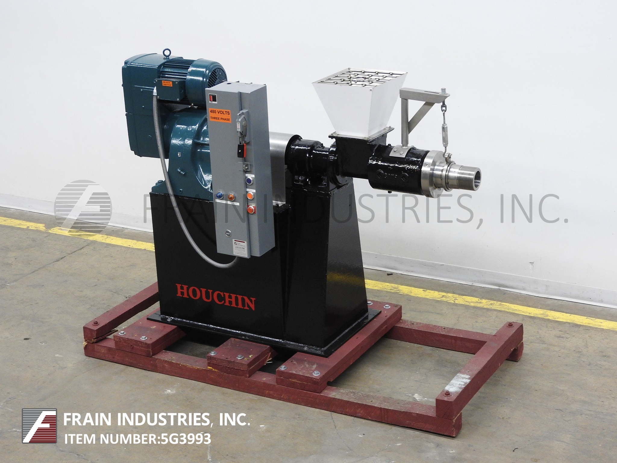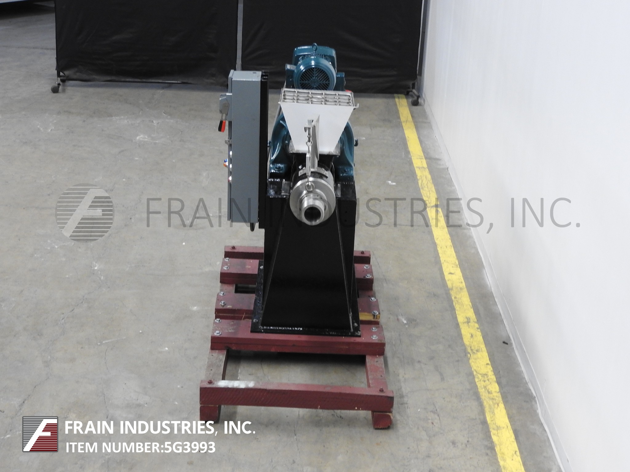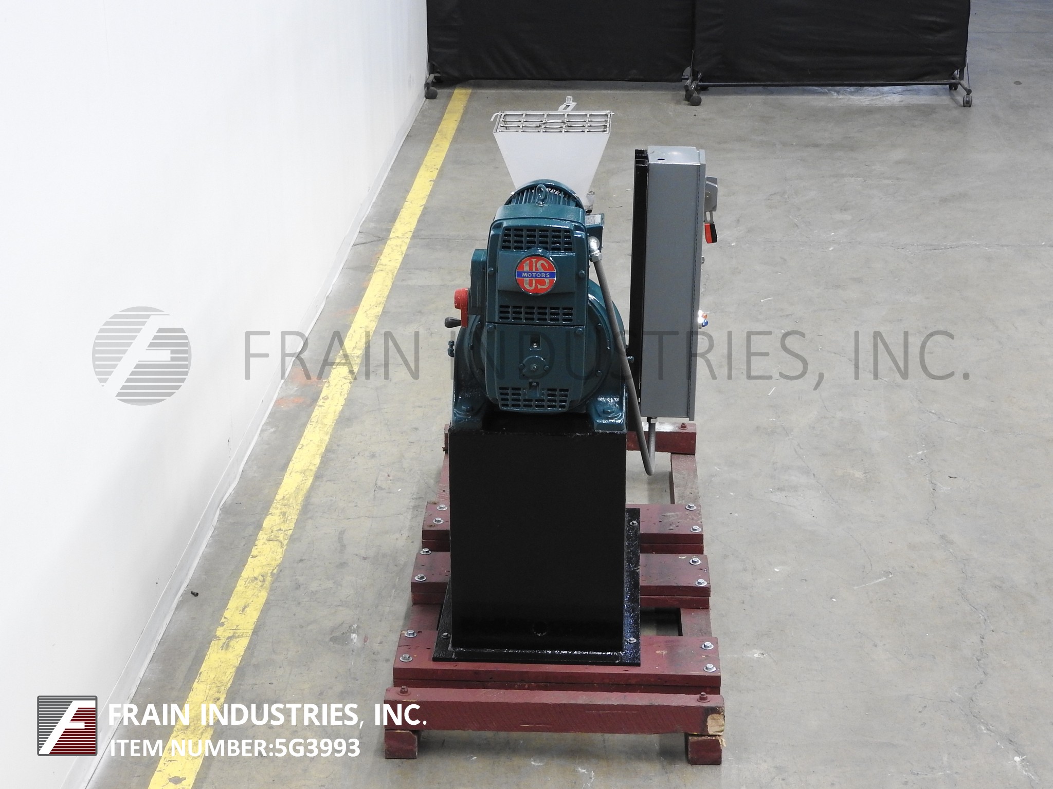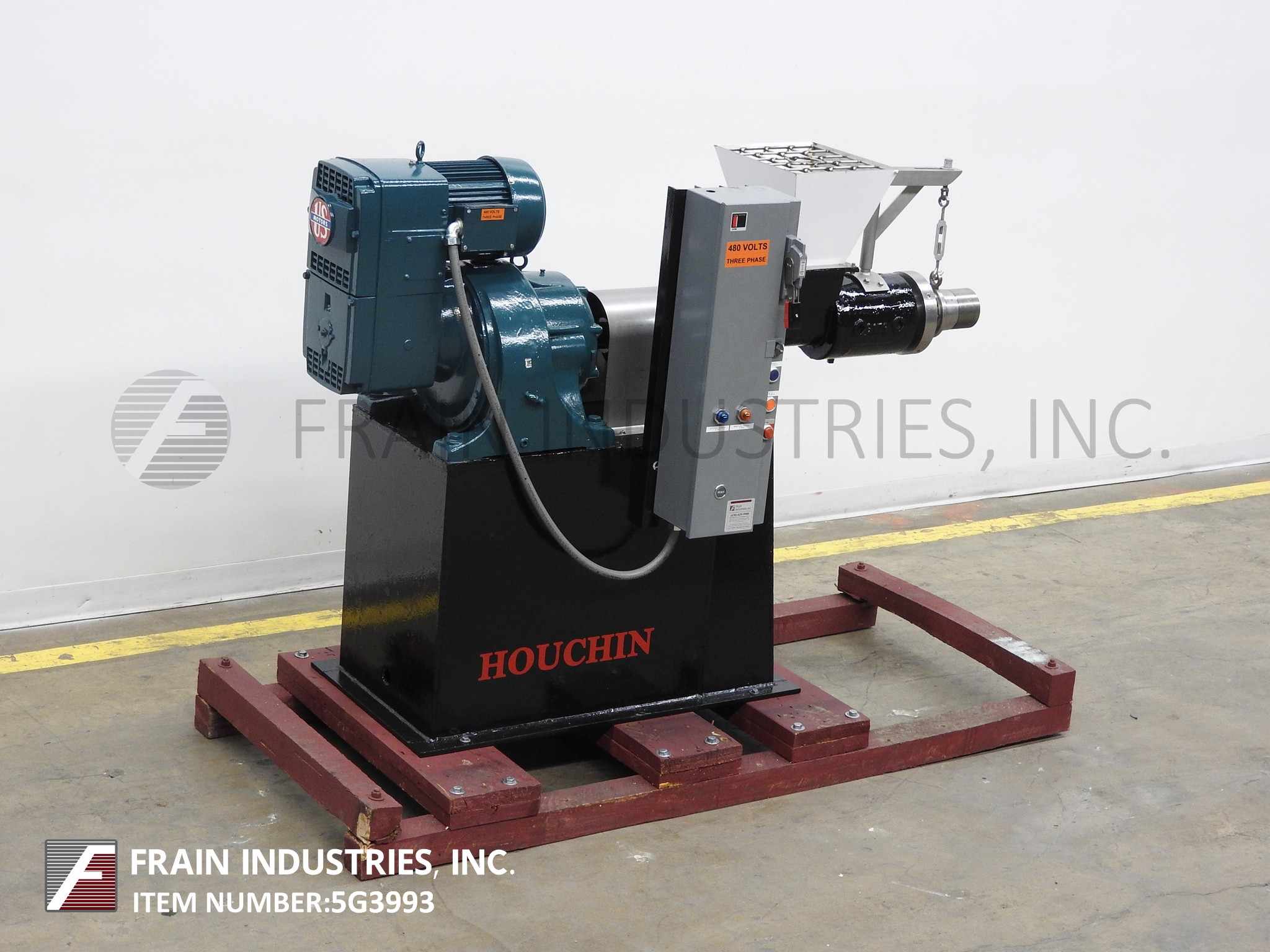 返回所有设备本杰明伊斯特伍德公司不锈钢4英寸螺丝皂压机/挤出机。用于精炼/混合/均质肥皂面、香水和颜色的混合物;或挤出准备切的肥皂。可加工100kg/小时。配备14"长x 12"宽x 10"深不锈钢供应料斗与安全网格,不锈钢螺丝,4"直径x 18-1/2"长x 2"轴直径,夹套螺壳(8"直径x 10"长)冷却机器与进水。不锈钢挤压锥与3"直径出口。采用2HP美国变速驱动电机,具有启动/停止和复位按钮以及反向/关闭/前进开关。