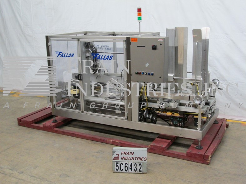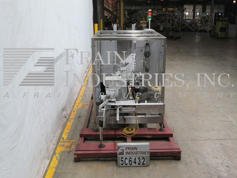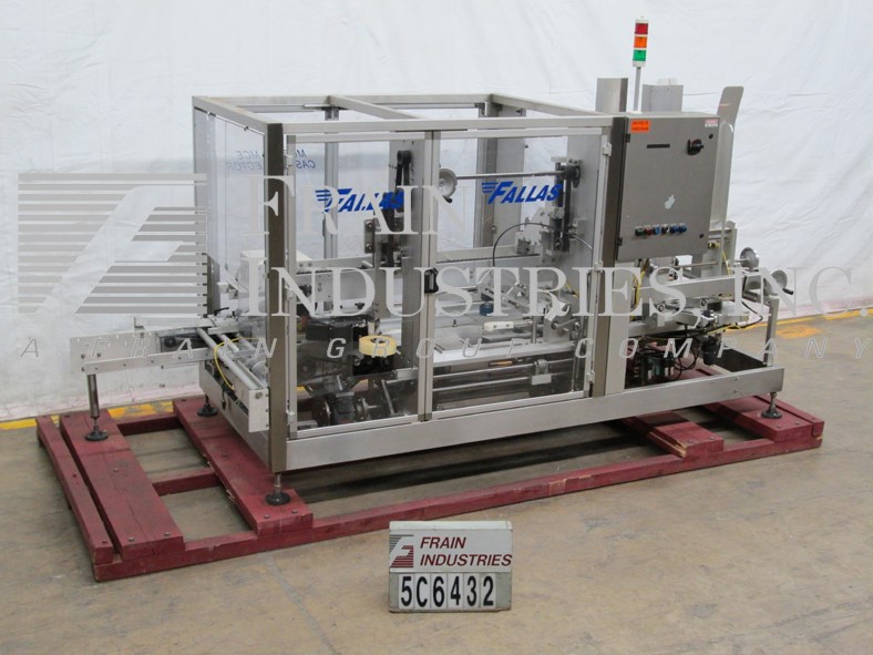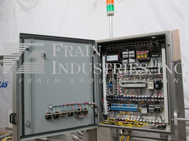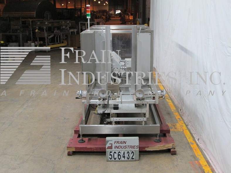 返回所有设备法拉斯MCE型,自动箱架和底锥,速度每分钟5到20箱,速度取决于材料和应用。箱体尺寸范围:(长度)6" - 22"(宽度)6" - 16"(深度)6" - 16"。拥有Allen-Bradley Micro-Logix 1000 PLC,光眼在情况下hopper低情况水平指示,3M Accuglide II磁带头。具有所有的S/S结构与Lexan联锁保护。手动曲柄调整料斗导轨尺寸转换。当他们离开机器时,在垂直的箱子上有栏杆。最后用于面食操作;尺寸:14'L x 5'W x 6'H