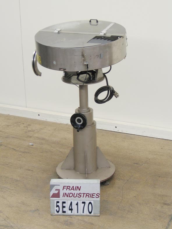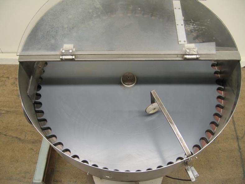 40"直径,S/S, 10"深碗给料机。单位有一个星轮与1-1/2 '中心,1/4马力驱动,手曲柄可调高度,和一个2“W x 1-1/2”H c型排放滑槽。安装在一个基座式框架。