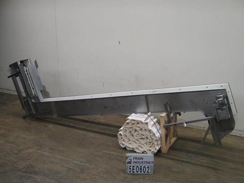 不锈钢,倾斜防滑带式给料。配备有316" 长×16" 宽氯丁橡胶皮带输送机,13" 宽×4" 上12" 高夹板中心。56" 水平层运行发送211" 垂直提升到48" 一个开销水平顶部运行和230“卸料高度。