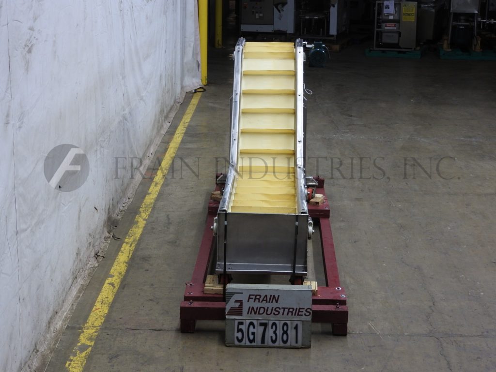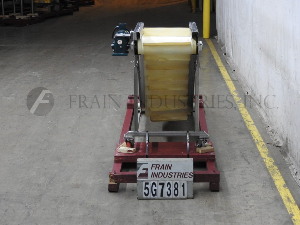 返回所有设备倾斜的夹紧输送机,不锈钢。配备21个“进给高度,18英寸”宽带传送带,宽带夹具8“中心。输送机有53”长底水平跑,48“长斜坡,29英寸长的横向跑步和51“排放高度。由顶部安装的¾HP电机驱动器供电,并安装在(4)腿不锈钢基架上,带脚轮。
