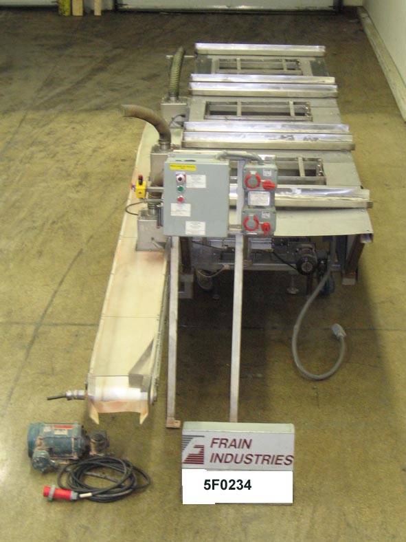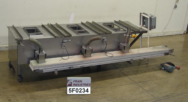 三到一,不锈钢,带式给料机额定540英尺/分钟-取决于材料和应用。配备三个24“长× 12”宽进料端口,三个36“长× 6”宽氯丁橡胶输送机,真空除尘端口,和一个156“长× 12”宽氯丁橡胶排放输送机。安装在带有脚轮的高度可调腿上。