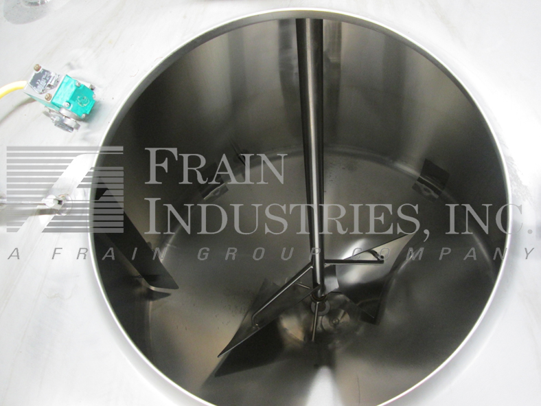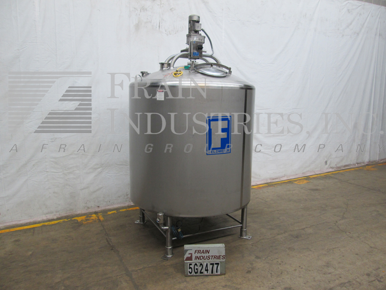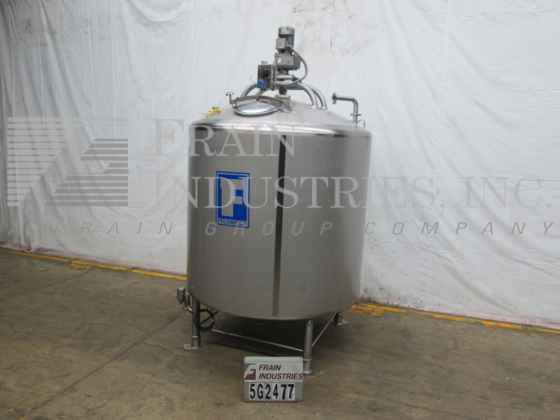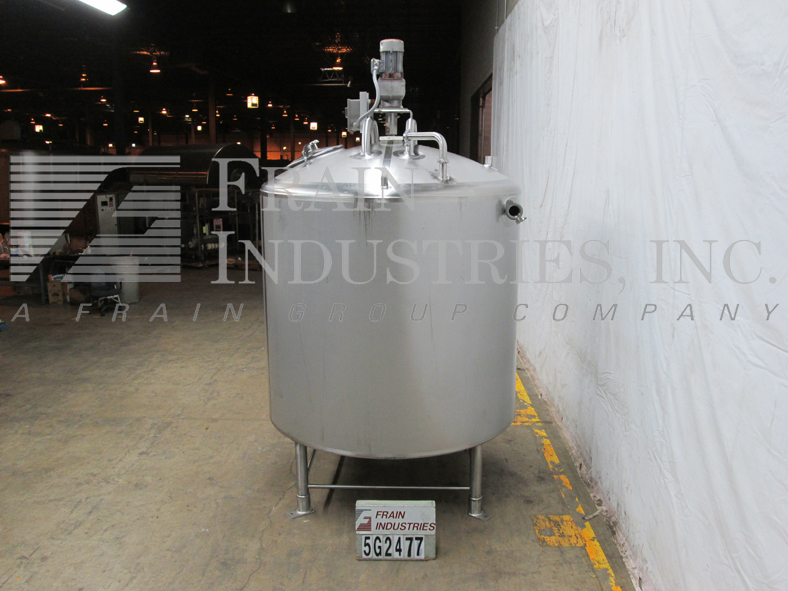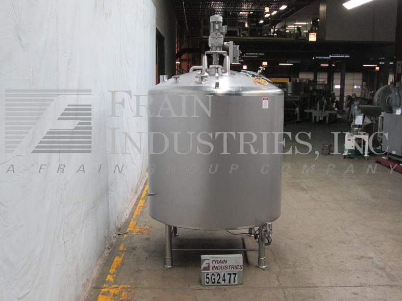 返回所有设备费尔德梅尔,1200加仑,316不锈钢,单壁搅拌罐。容器有一个70“直壁72”直径。扫描风格风潮。穹顶顶部配备一个18”升降和螺栓下人方式,一个3.5”OD/2.75”ID三卡箍,一个3.75”OD/2.75”ID i型线和三个2.5”OD/1.75”ID i型线配件;以及一个4”ID开口排气口。侧壁有一个3.75"OD/2.75"ID i型管接头和一个温度探头。碟底有一个3.75"OD/2.75"ID i型线中心放电,21"地间隙和一个压力传感器。安装在四个不锈钢支架上。