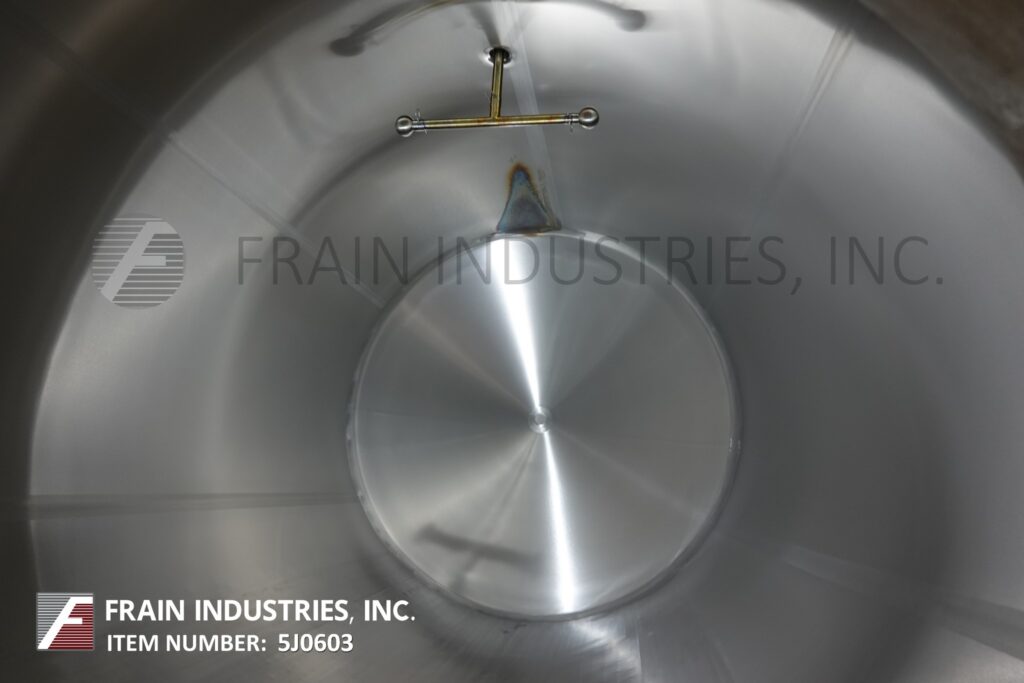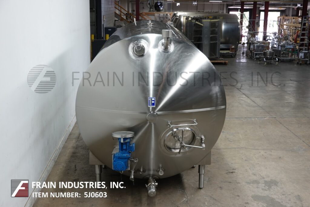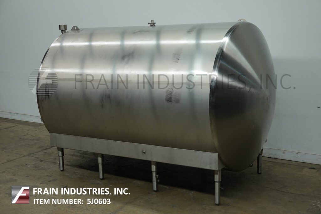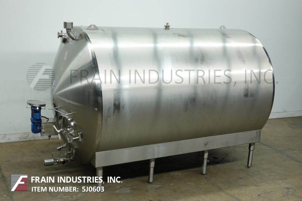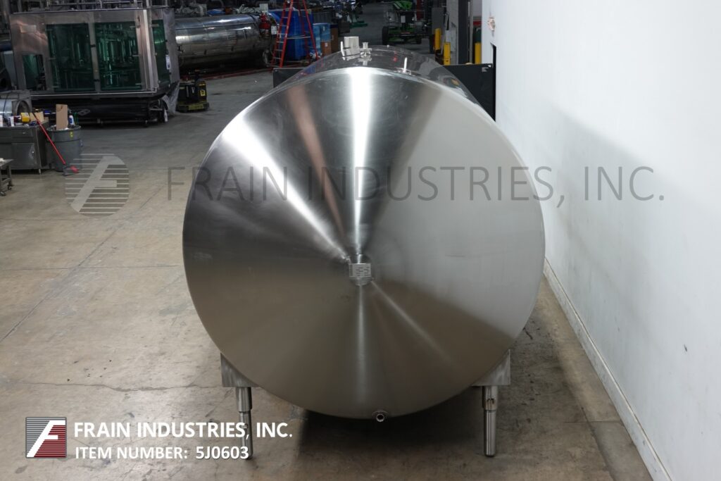 Back to All EquipmentFeldmeier, 4200 gallon, 304 stainless steel horizontal tank. Vessel Dimensions: 90" diameter x 140" straight wall with dish ends. Equipped with a 20" x 16" front end man way with flip open cover, 2 Hp bottom front mounted prop style mixer, CIP spray balls, thermowell and a 3½" OD/3" ID Tri-clamp style discharge fitting with 12" ground clearance.