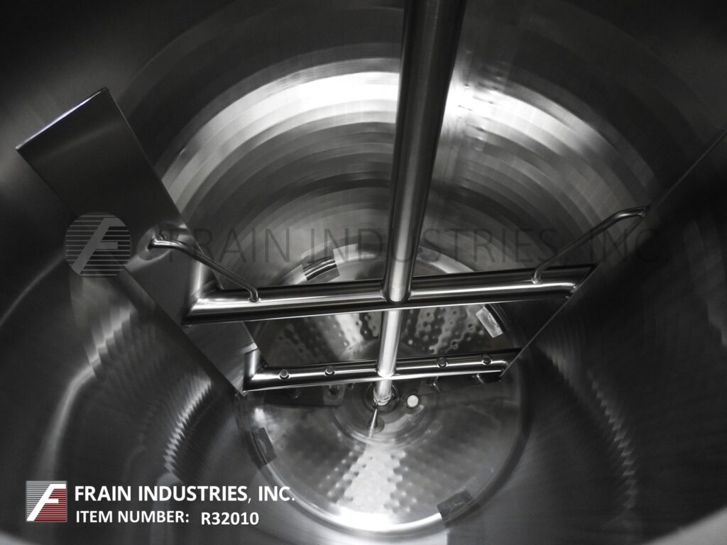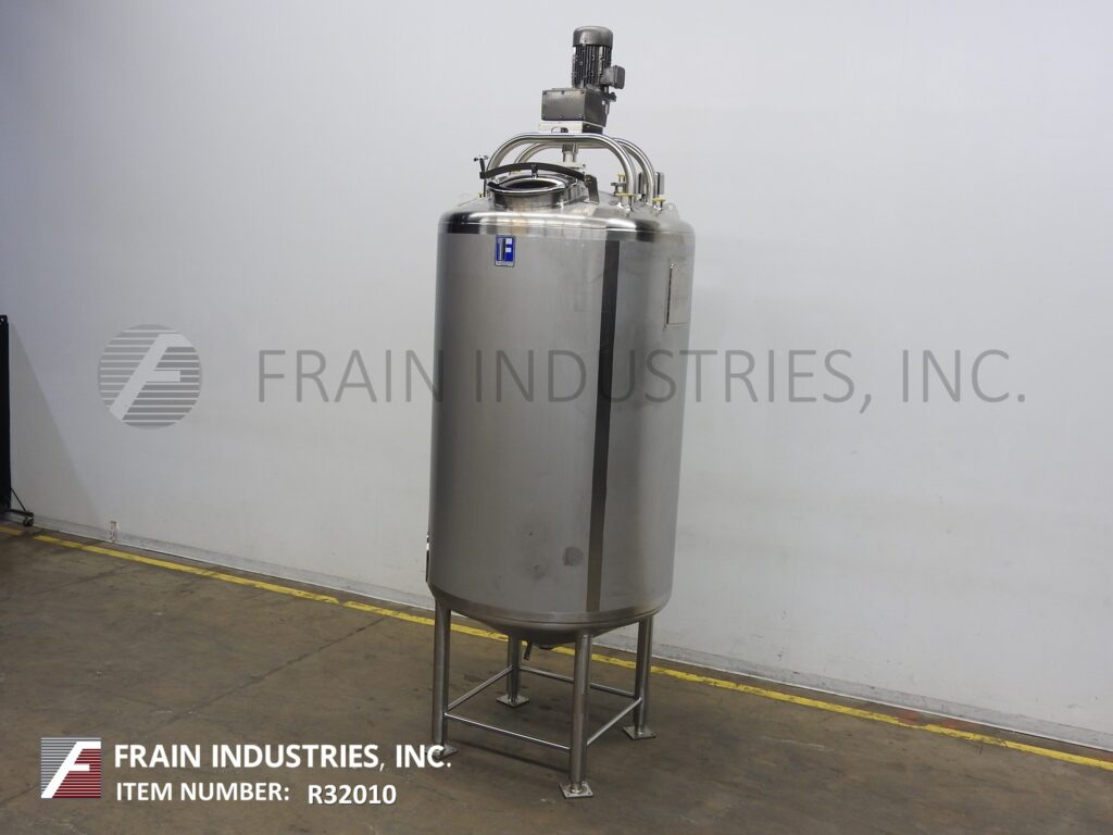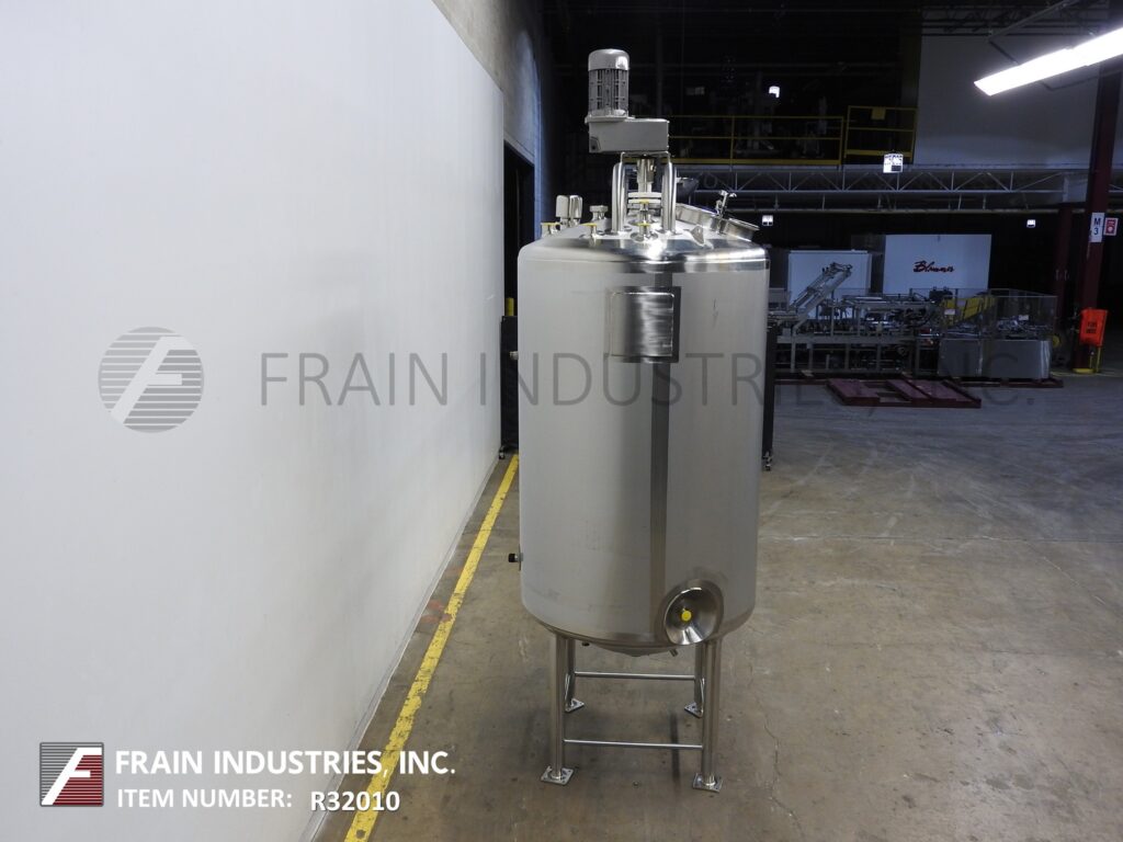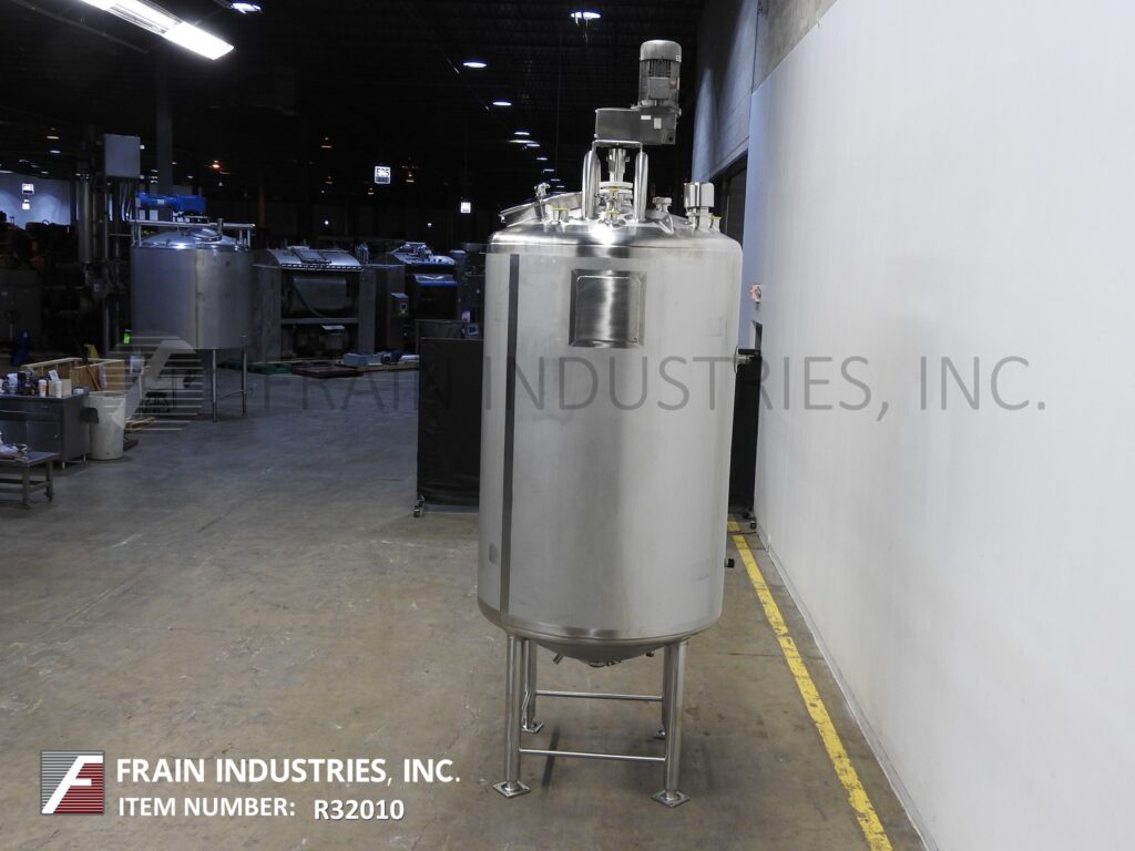 Back to All EquipmentFeldmeier, 600 gallon capacity, 304 stainless steel jacketed process tank. Vessel dimensions: 48" ID x 80" straight wall. Equipped with dome top, 18" ID top manway, 5 Hp top mounted sweep agitator, (2) CIP spray balls supplied by 2"OD / 1½"ID Tri Clamp fittings, (1) thermowell and 3½" OD / 3" ID tri-clamp center bottom discharge with 22" ground clearance.