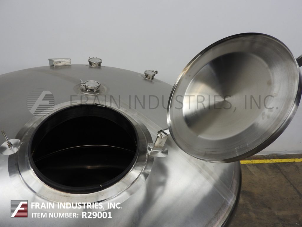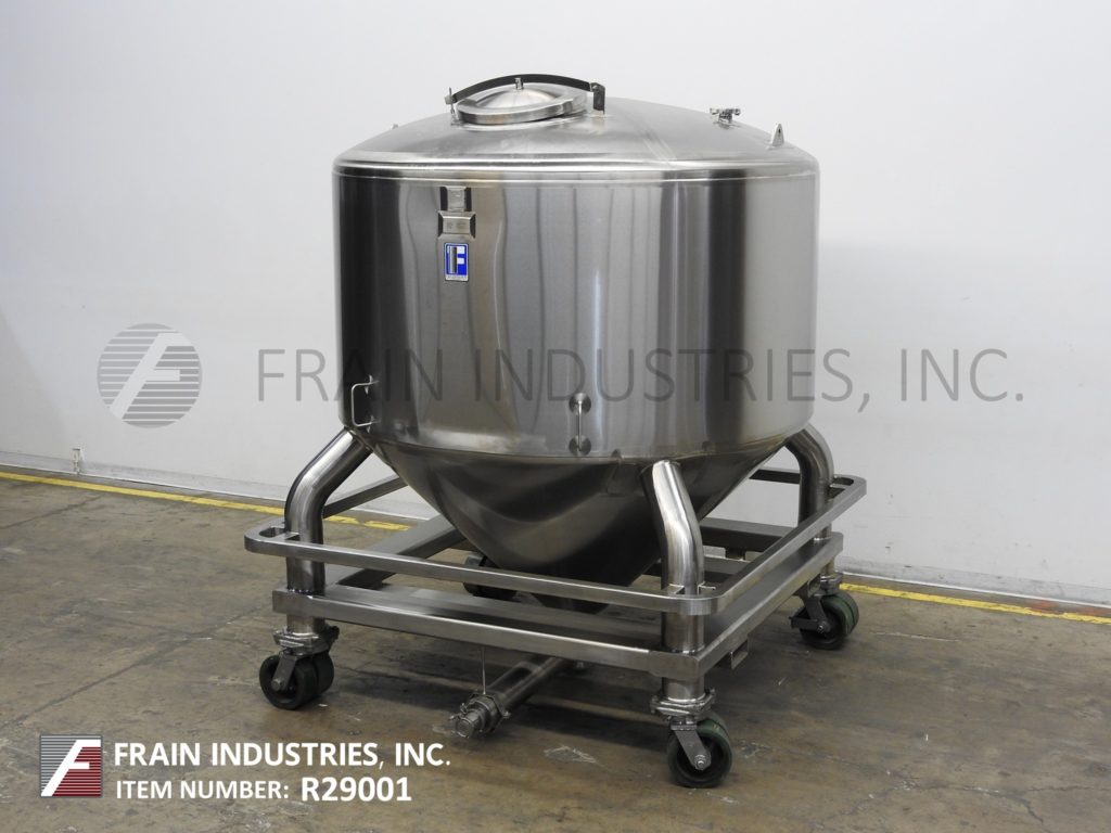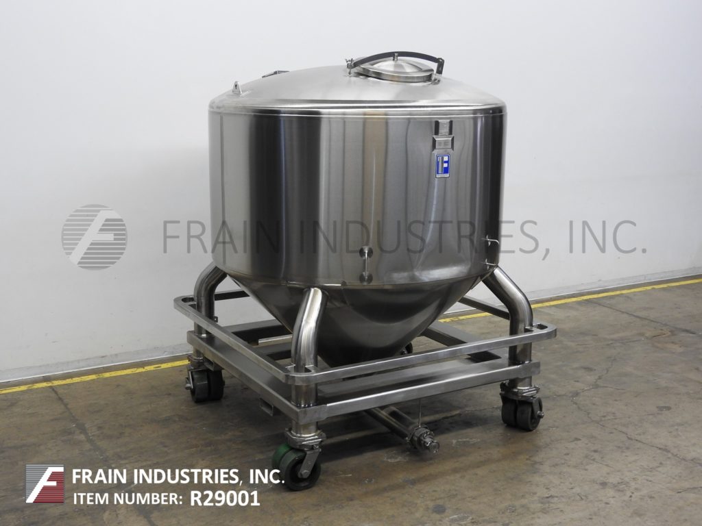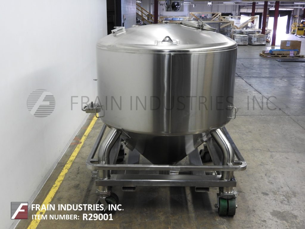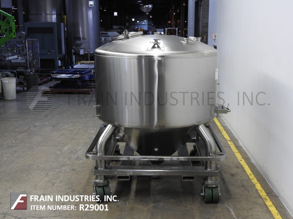 返回所有设备费尔德梅尔,1056加仑(4000升),316不锈钢,隔离便携式液体储罐。容器尺寸:80"直径x 90"深,42"直壁。配有圆顶顶盖,20"人路,可翻转/螺栓下盖和(1)温度计套管。锥底有3½“外径/ 3”ID三夹式底部放电与3“地间隙。安装在带有脚轮的不锈钢(4)腿上。