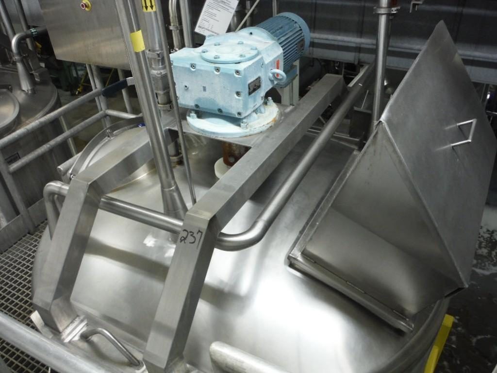 返回所有设备Feldmeier,1,200加仑容量,304个不锈钢混合罐。船舶尺寸:72“直径x 64”直墙,带菜式底部。配备了20英寸直径升降机和夹住了男人的方式和24“x 16”开放式手工途径。7½HP桥式安装扫描搅拌器。安装在(4)管腿上,带3英“OD / 3”ID Tri-Clamp风格底部放电,16“地间隙。